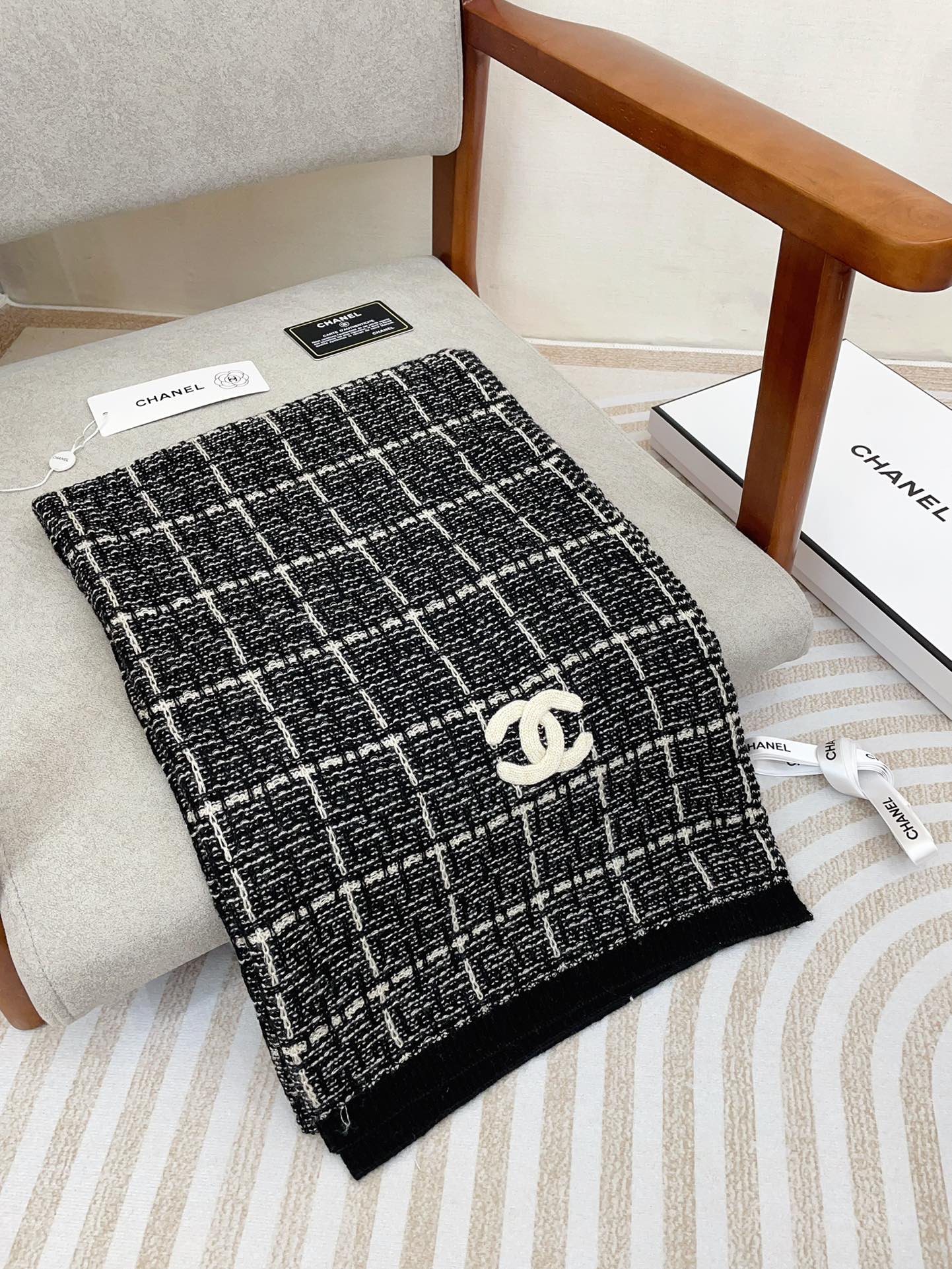 CC Scarf 180 CM In Black With White Stripes Cashmere 415181