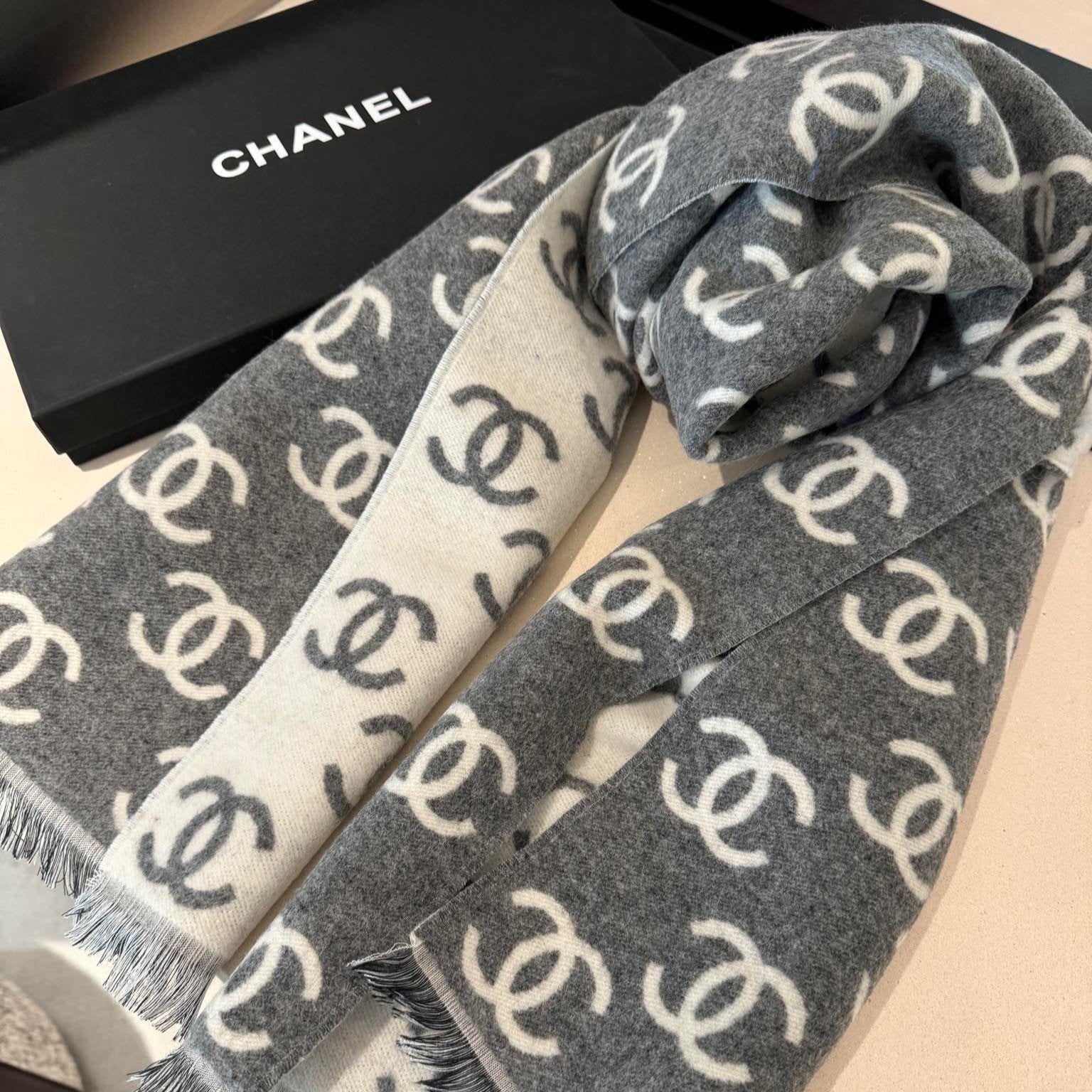CC Scarf 180 CM In Dark Grey Mix Light Grey Print Logo Wool And Cashmere 359268