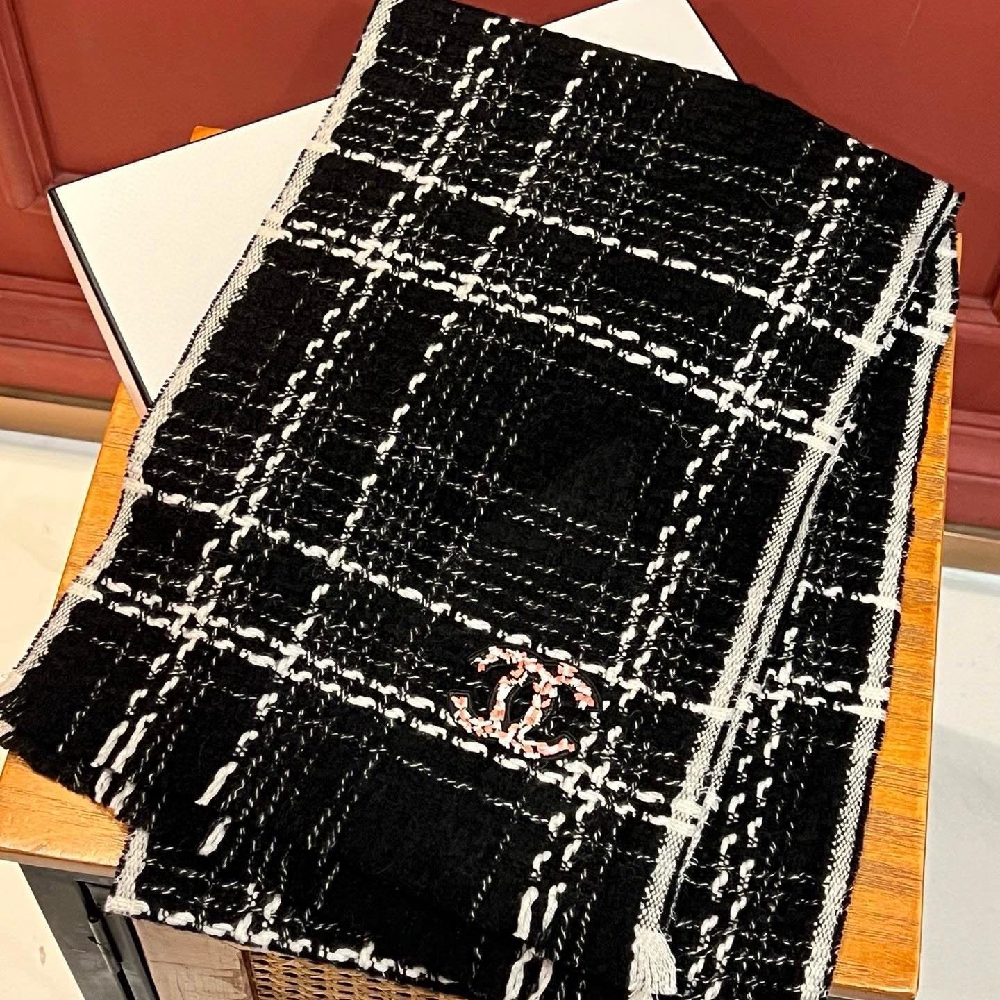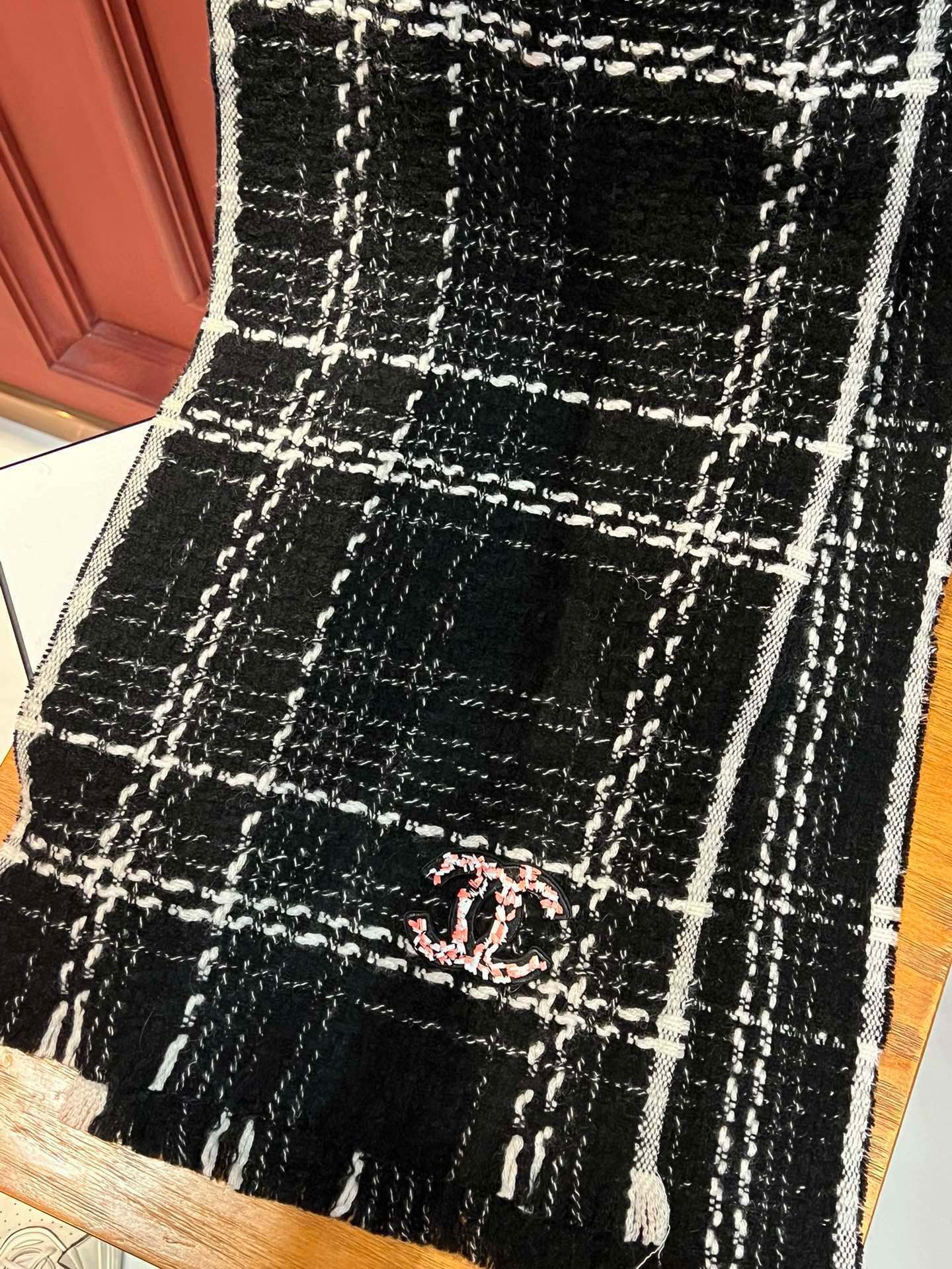 CC Scarf 185 CM Black With White Stripes Cashmere 422921
