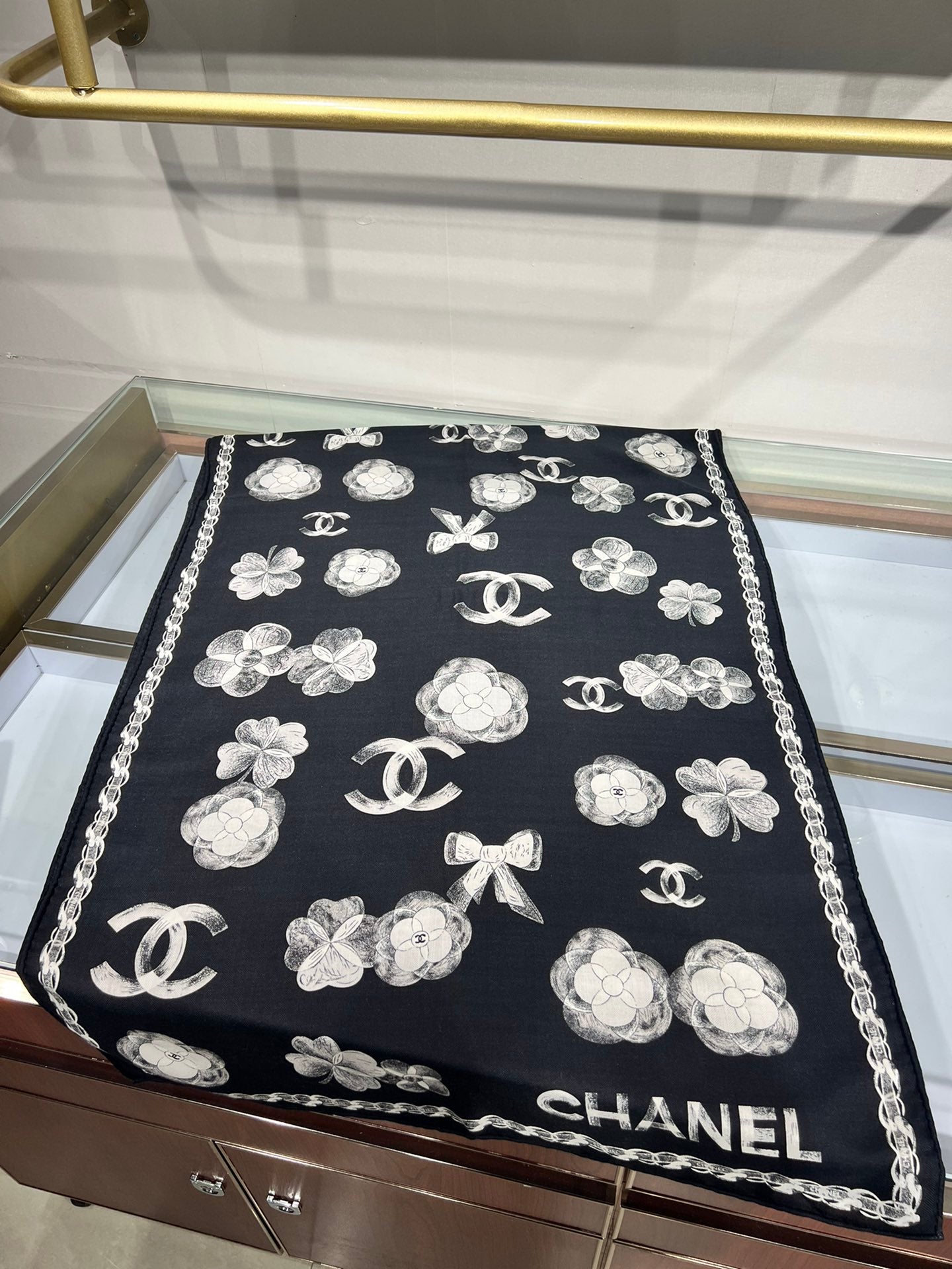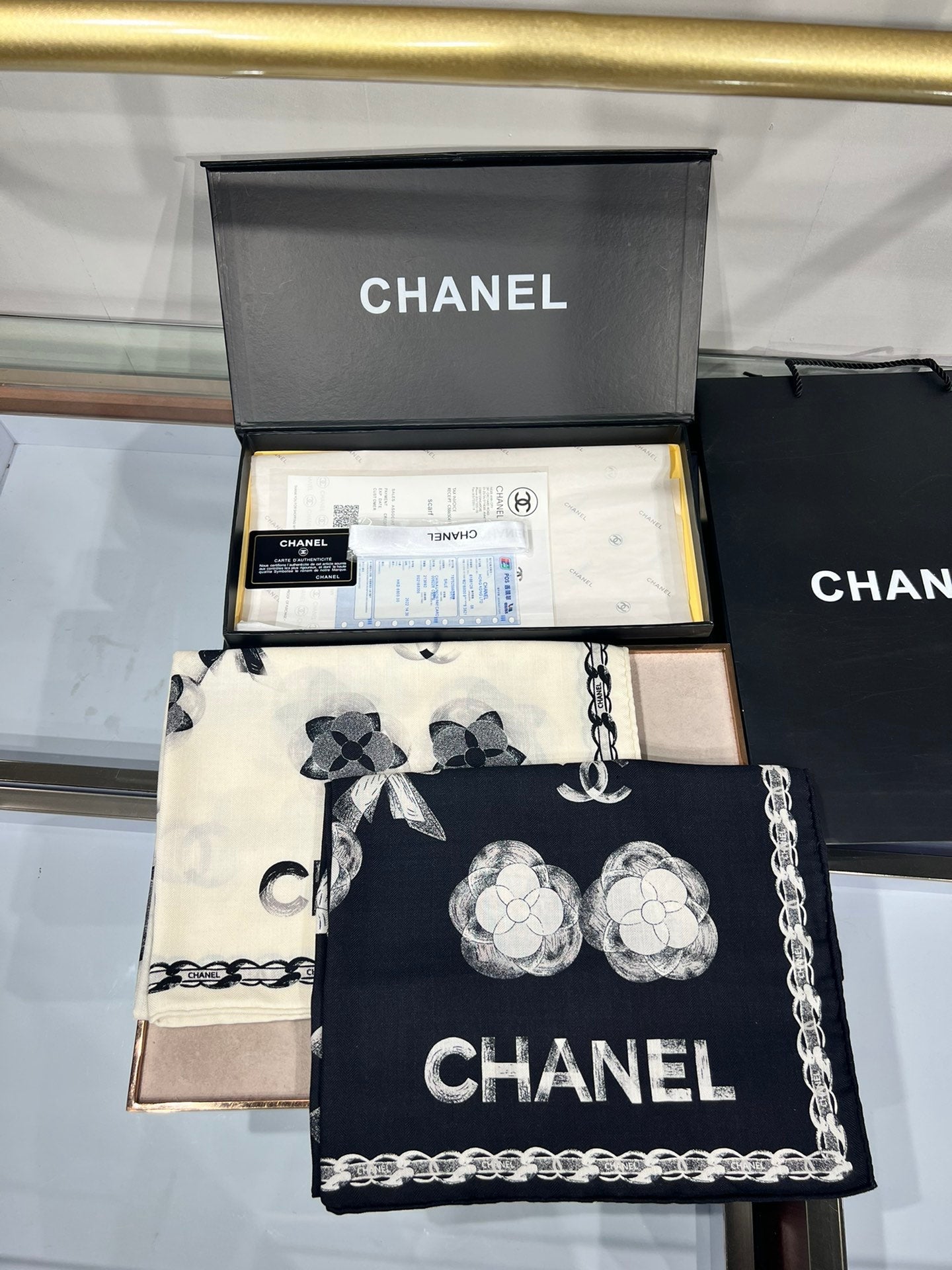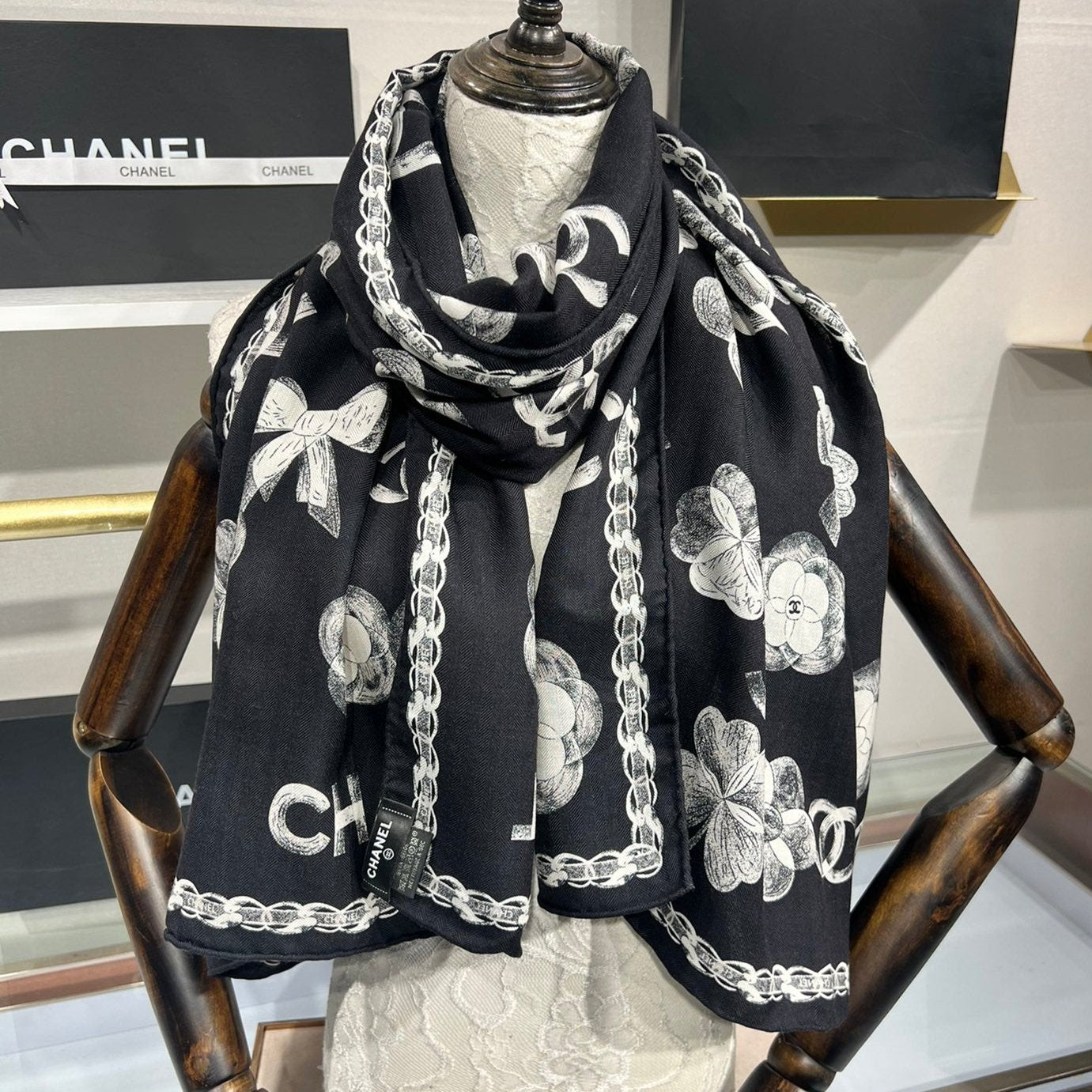CC Scarf 185 CM In Black White Cashmere Silk 413590