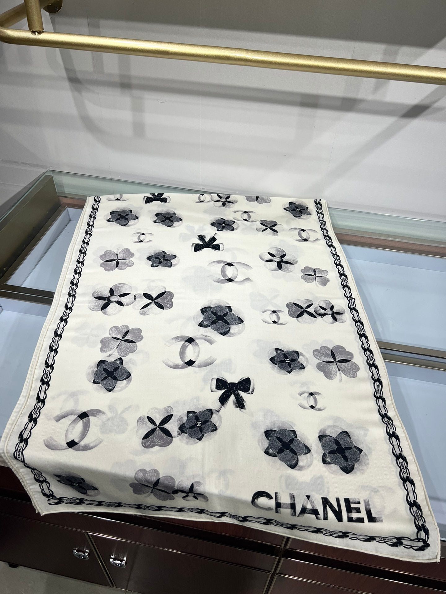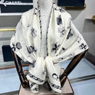 CC Scarf 185 CM In White Black Cashmere Silk 413589