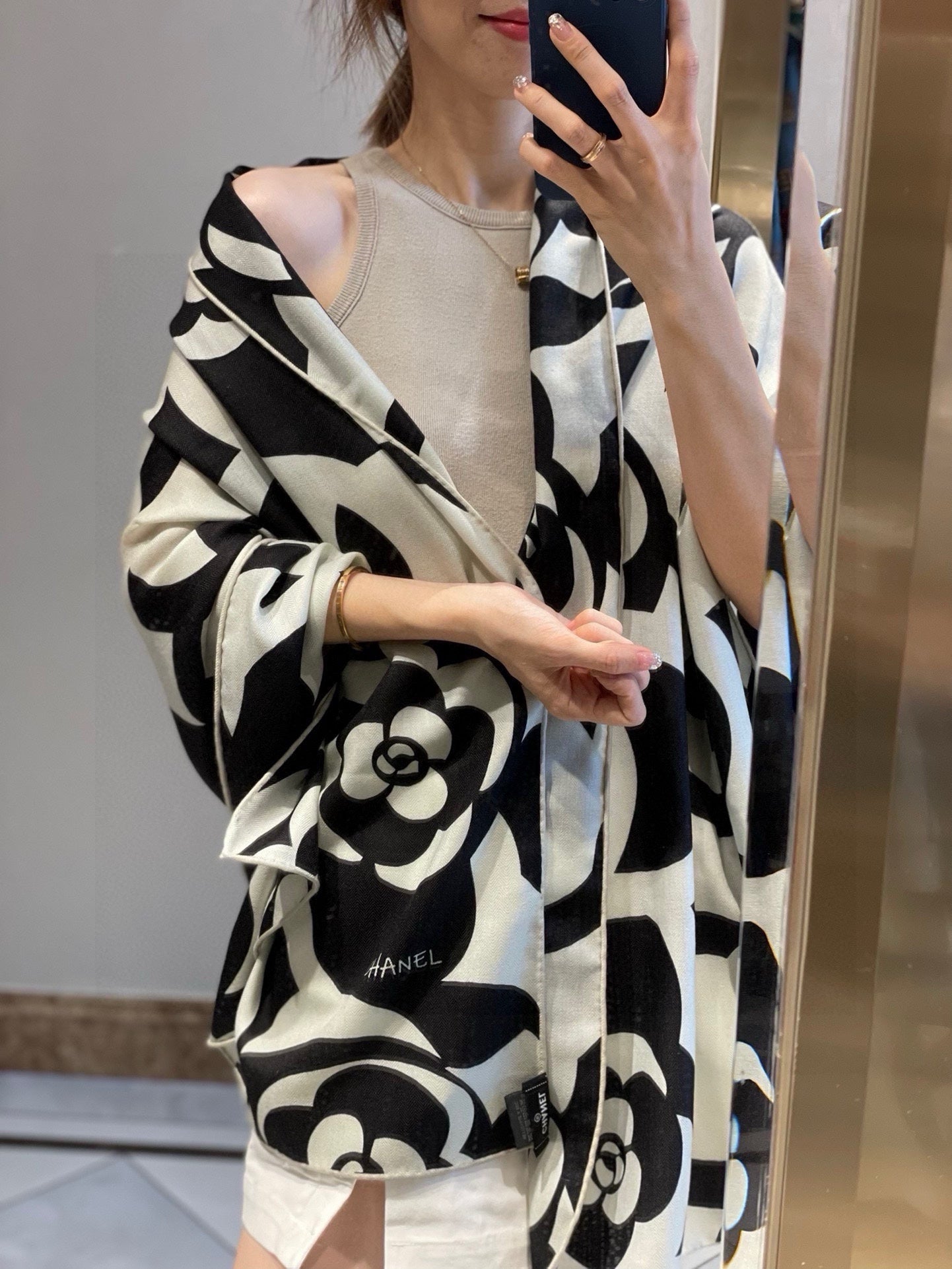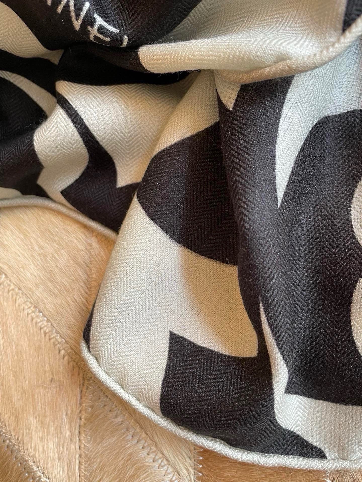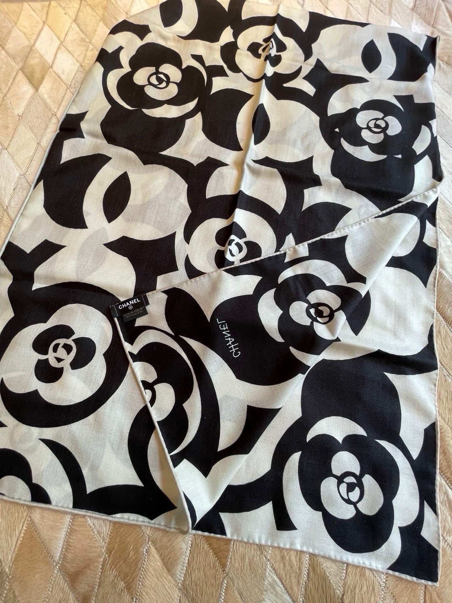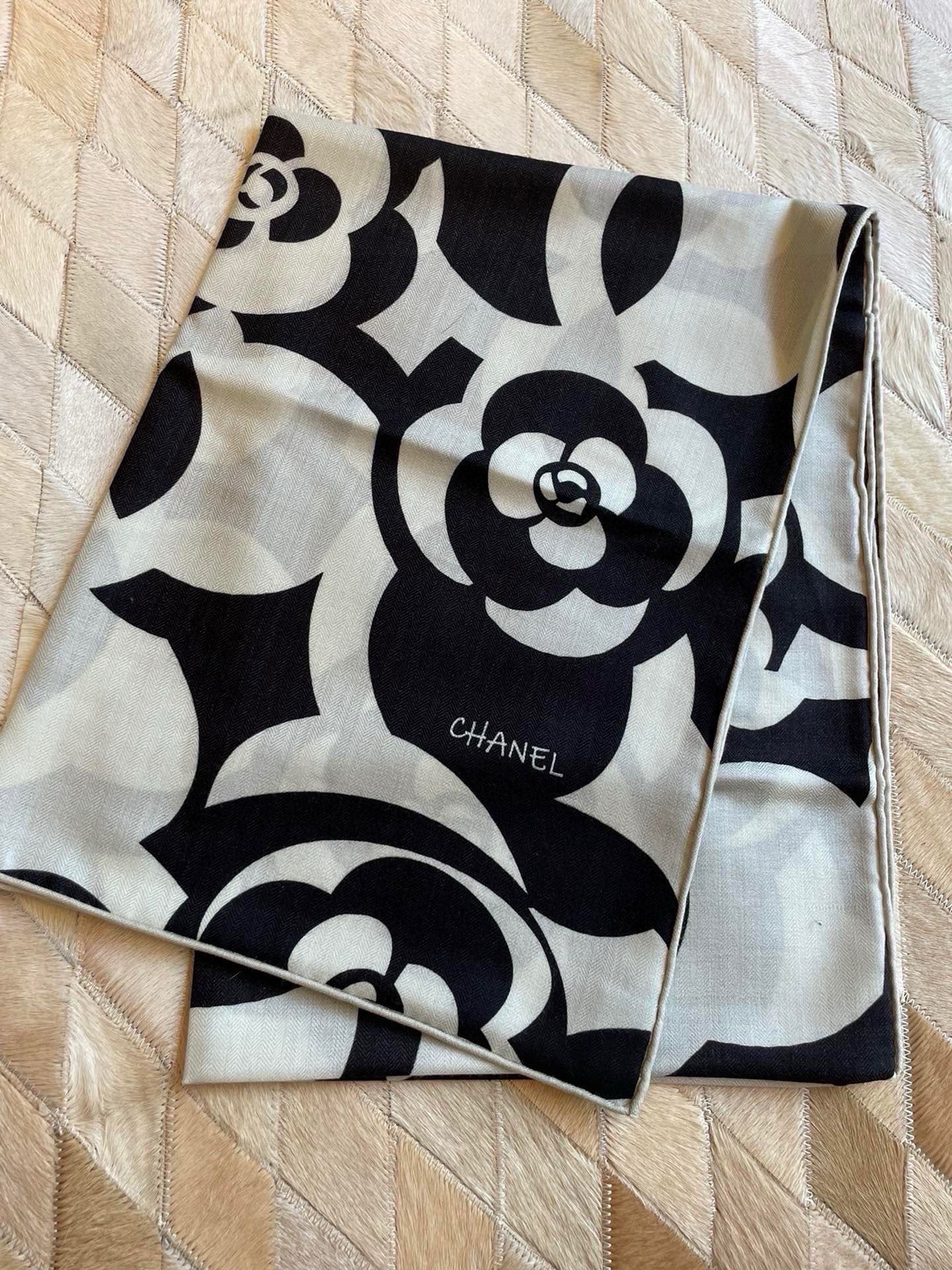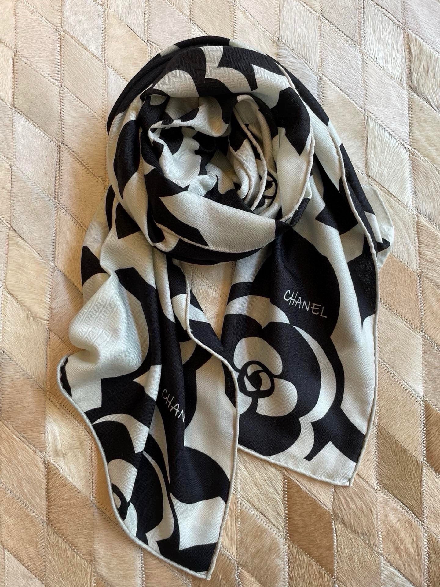 CC Scarf 190 CM In Black And White Floral Print Cashmere Silk 208542
