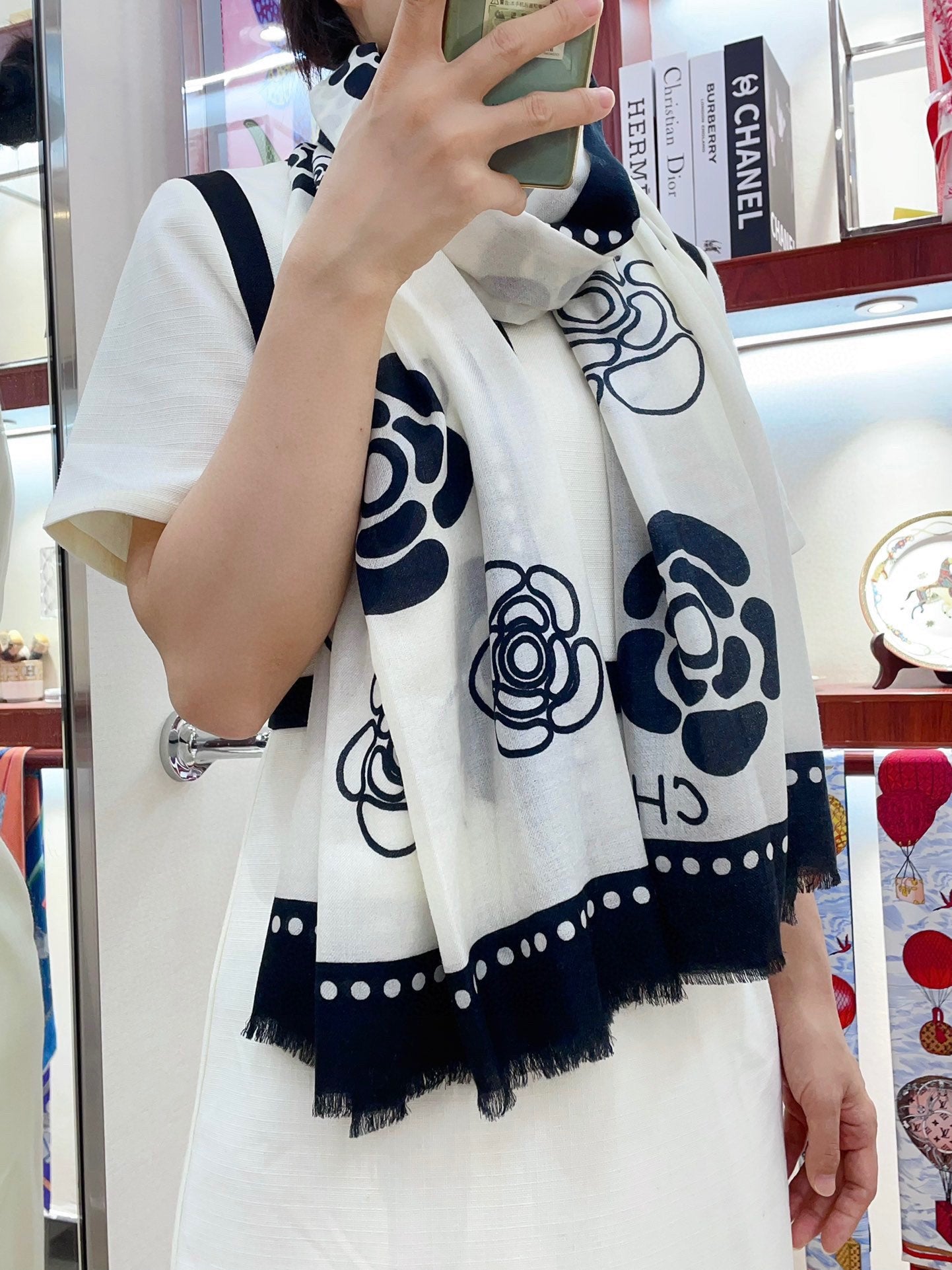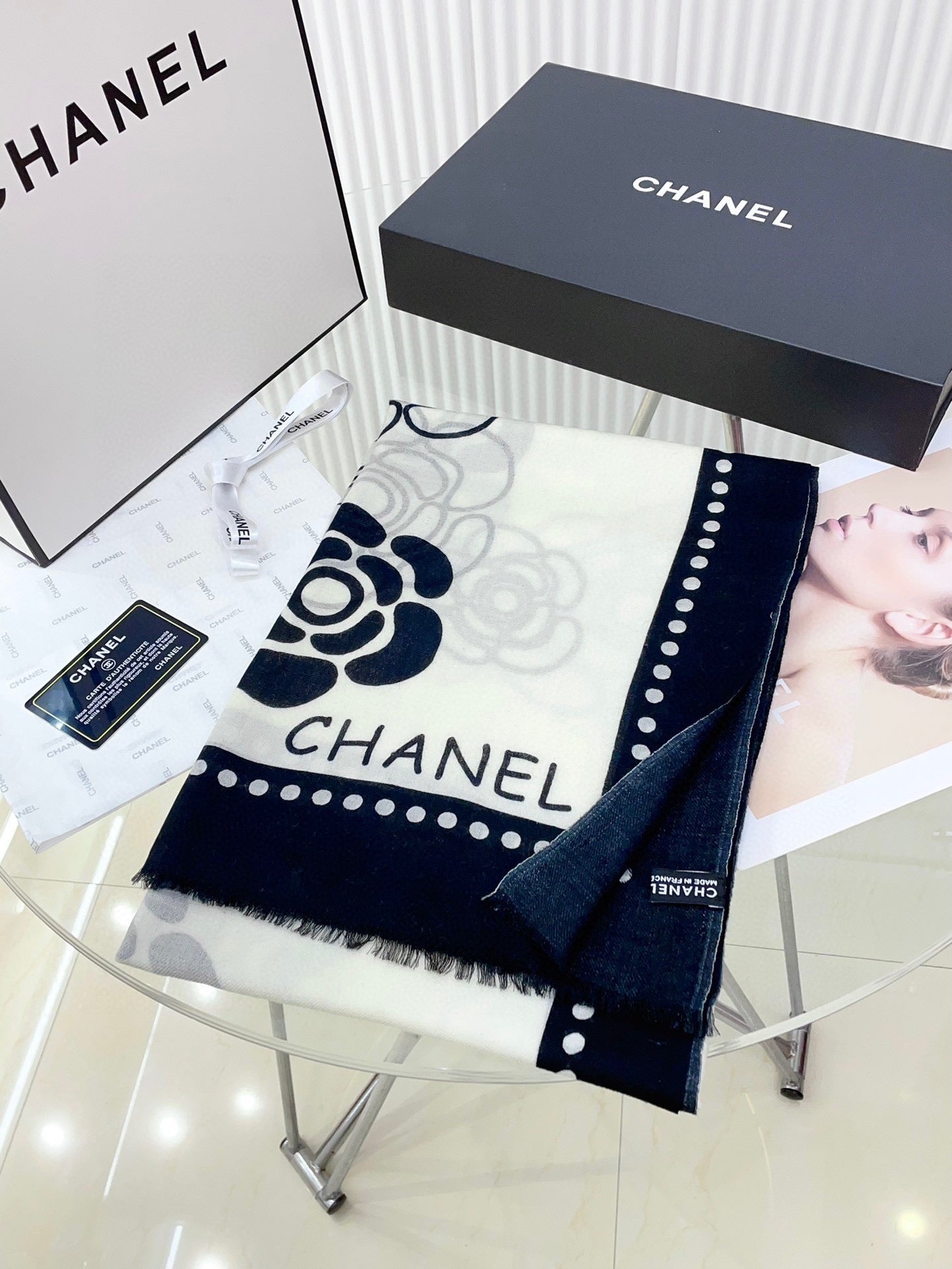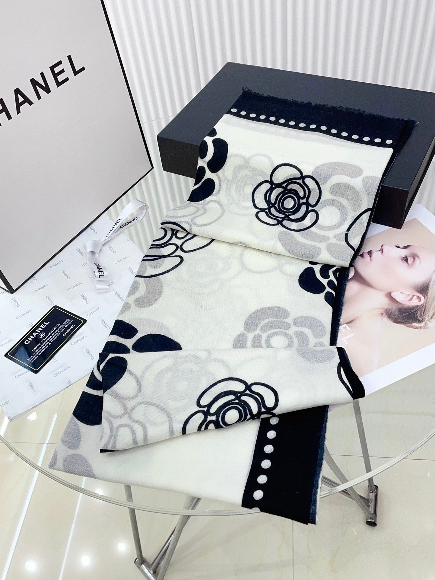 CC Scarf 190 CM In White Mix Black Cashmere 407268