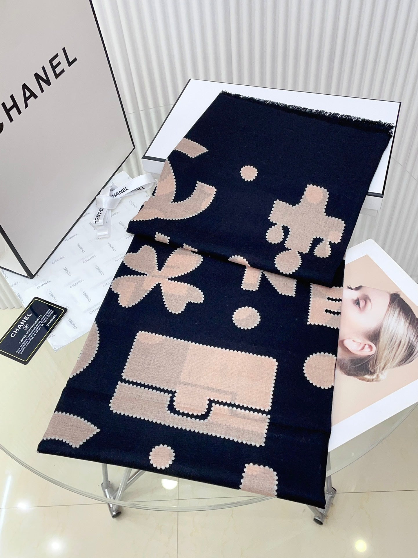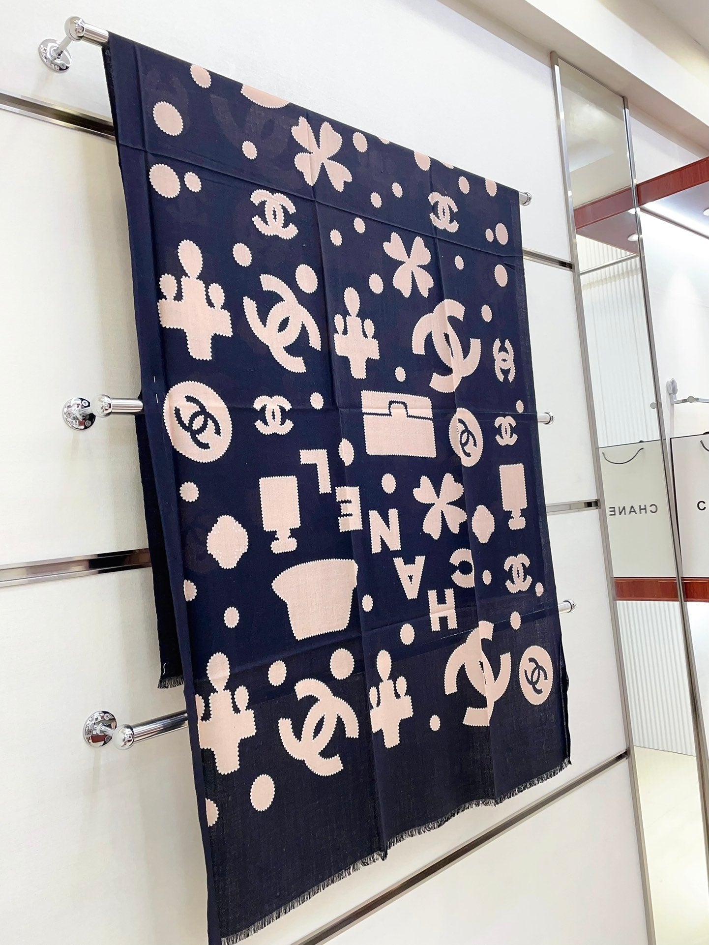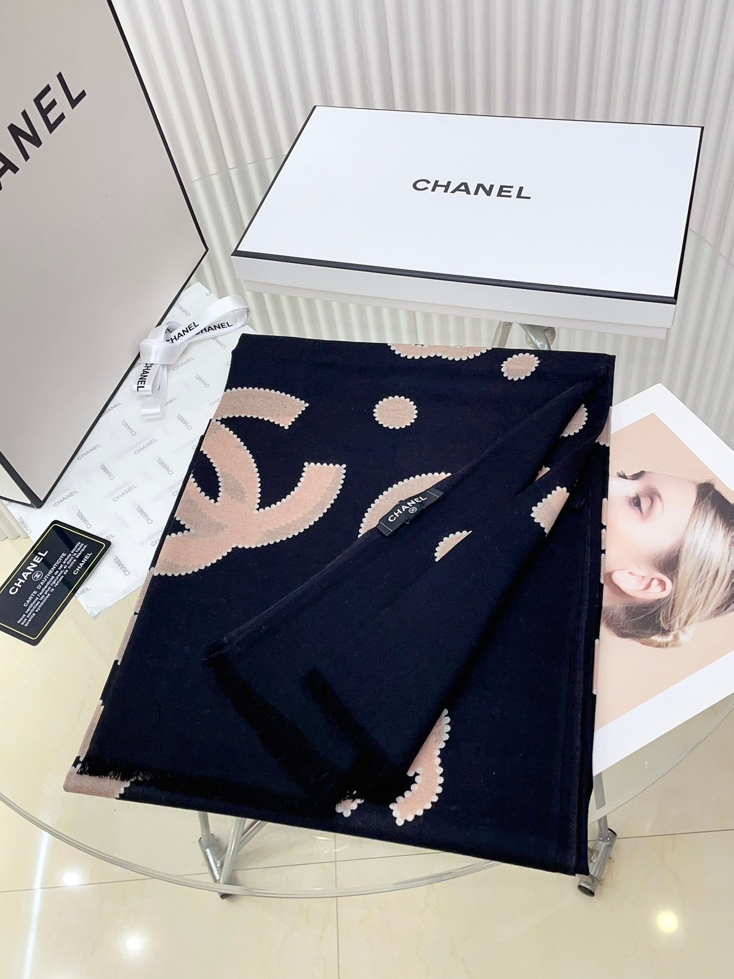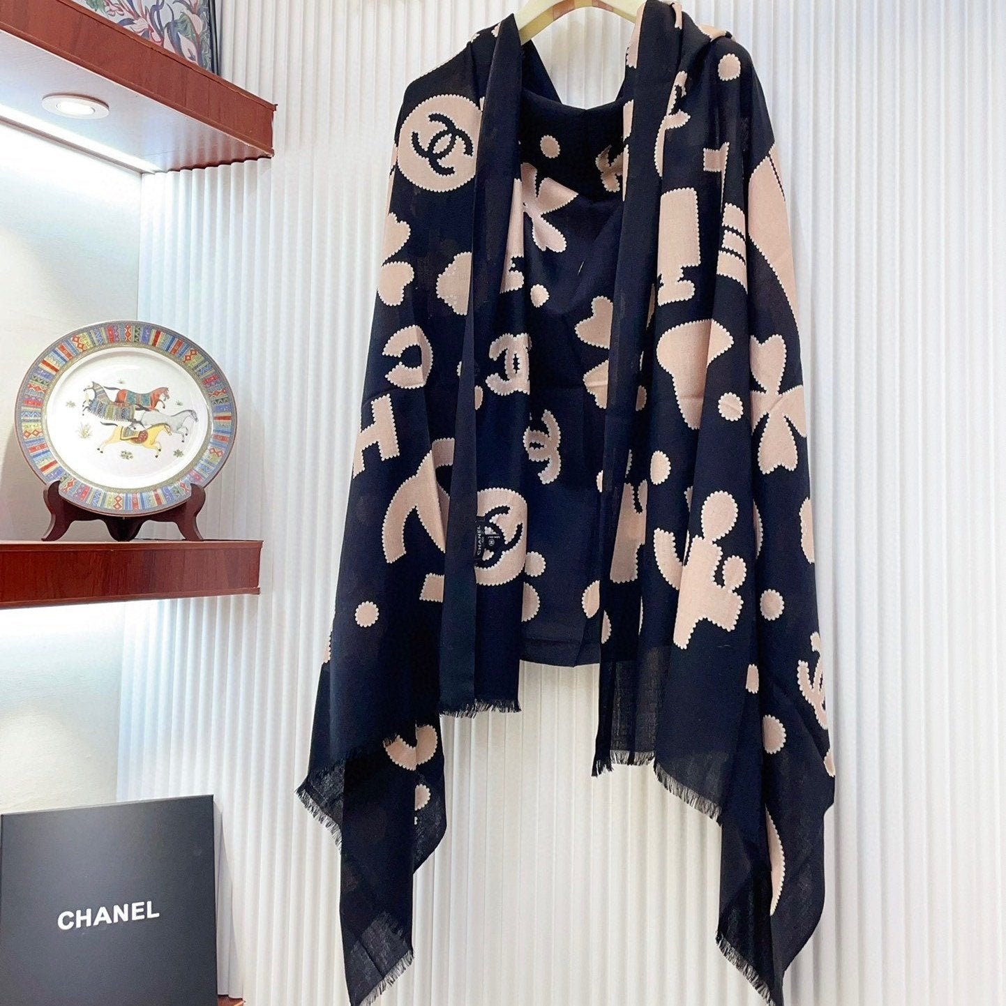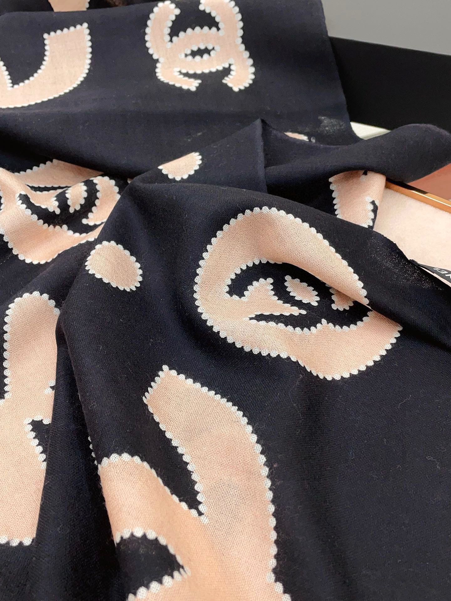 CC Scarf 200 CM In Black Mix Beige Silk Cashmere 324746
