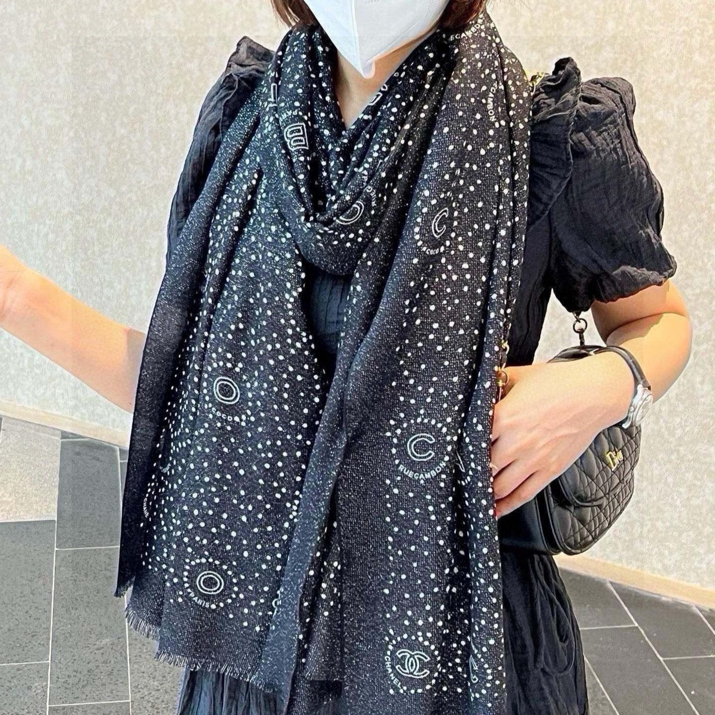 CC Scarf 200 CM In Black Polka Dot Cashmere 274118