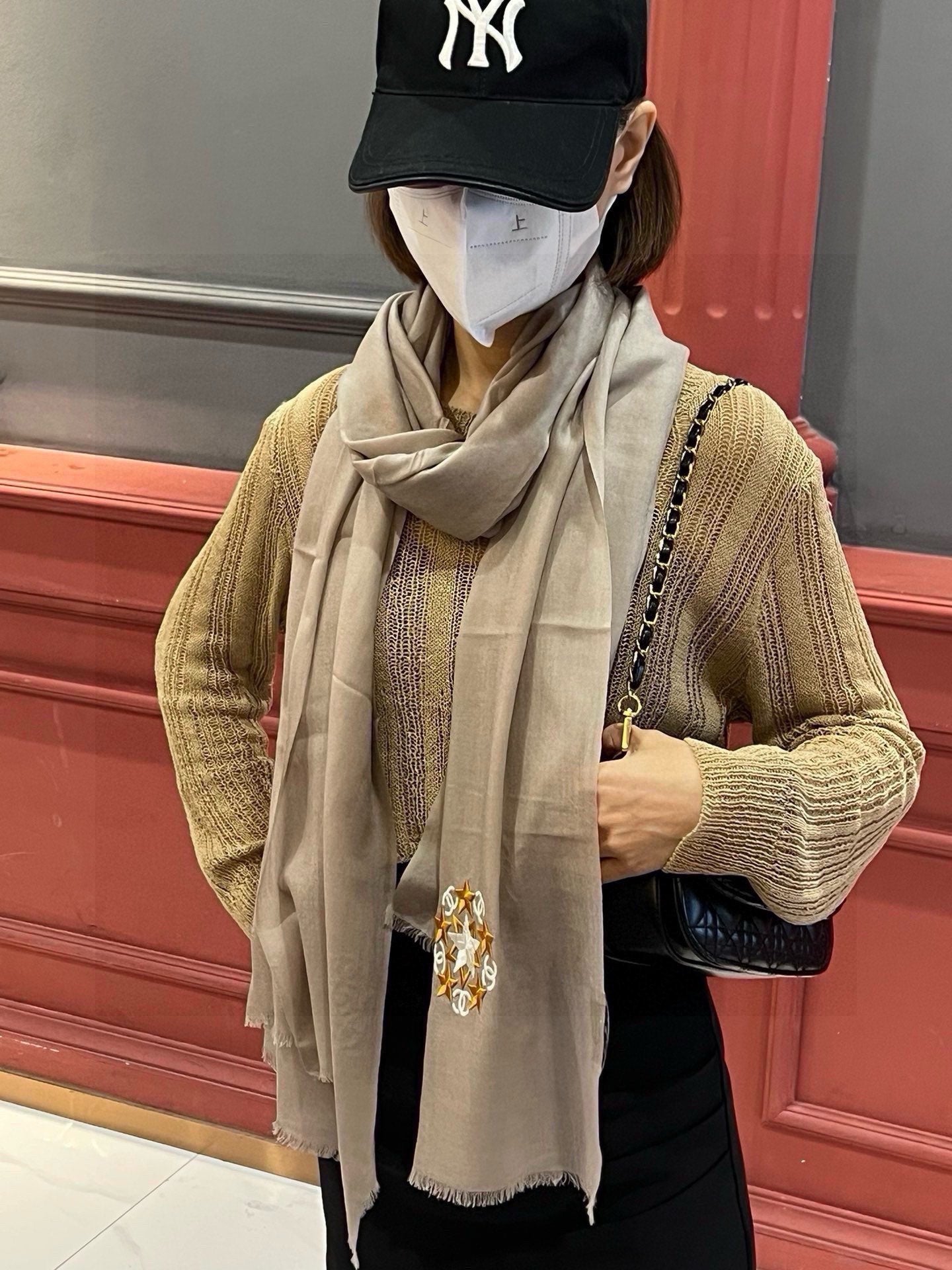 CC Scarf 200 CM In Brown Linen Fabric 407089