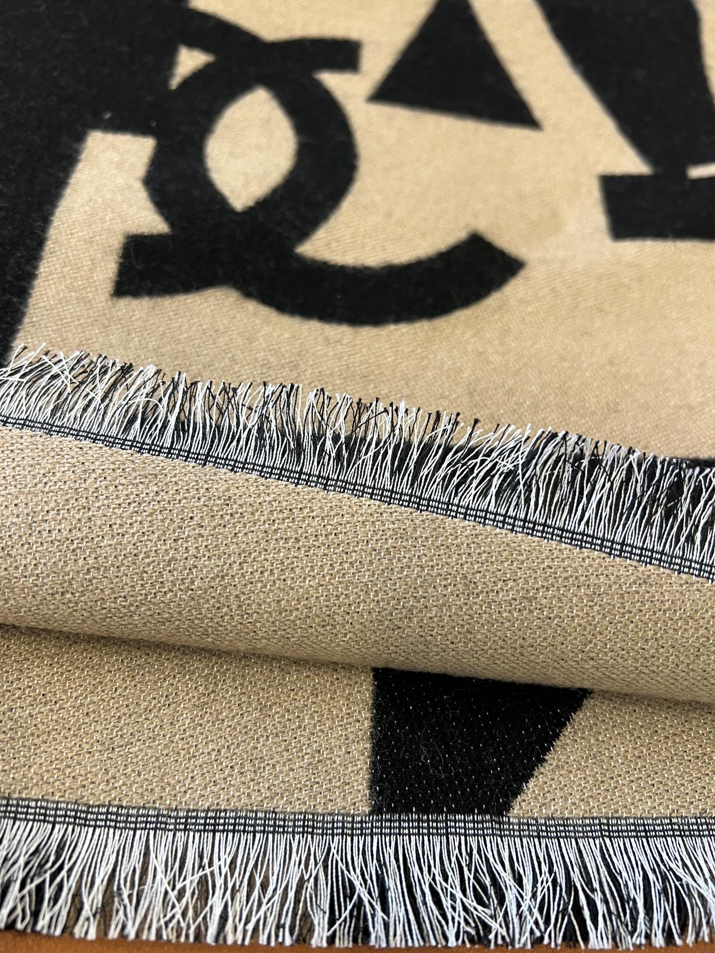CC Scarf 202 CM In Black Mix Dark Beige Fleece Wool And Mulberry Silk 335914