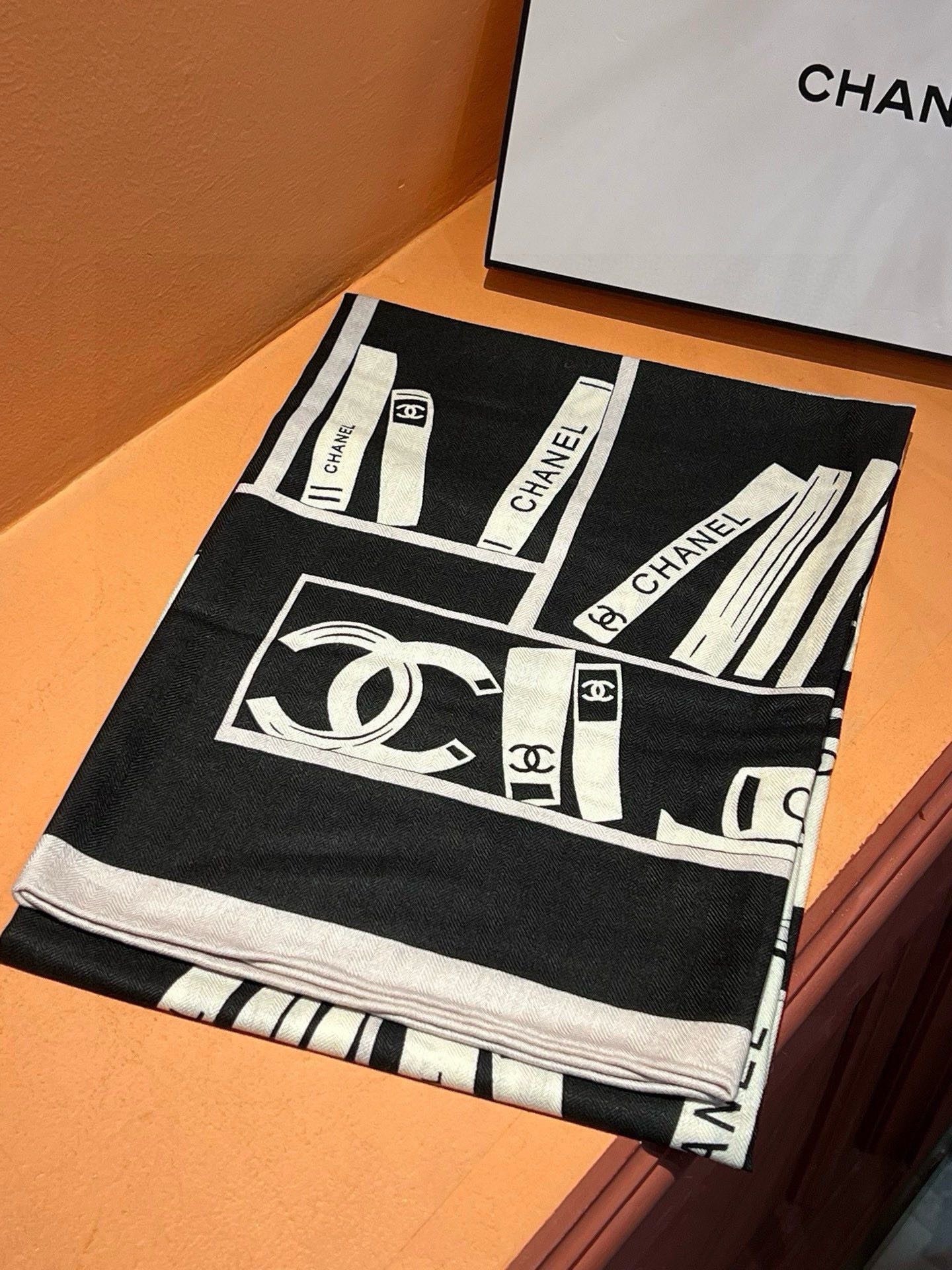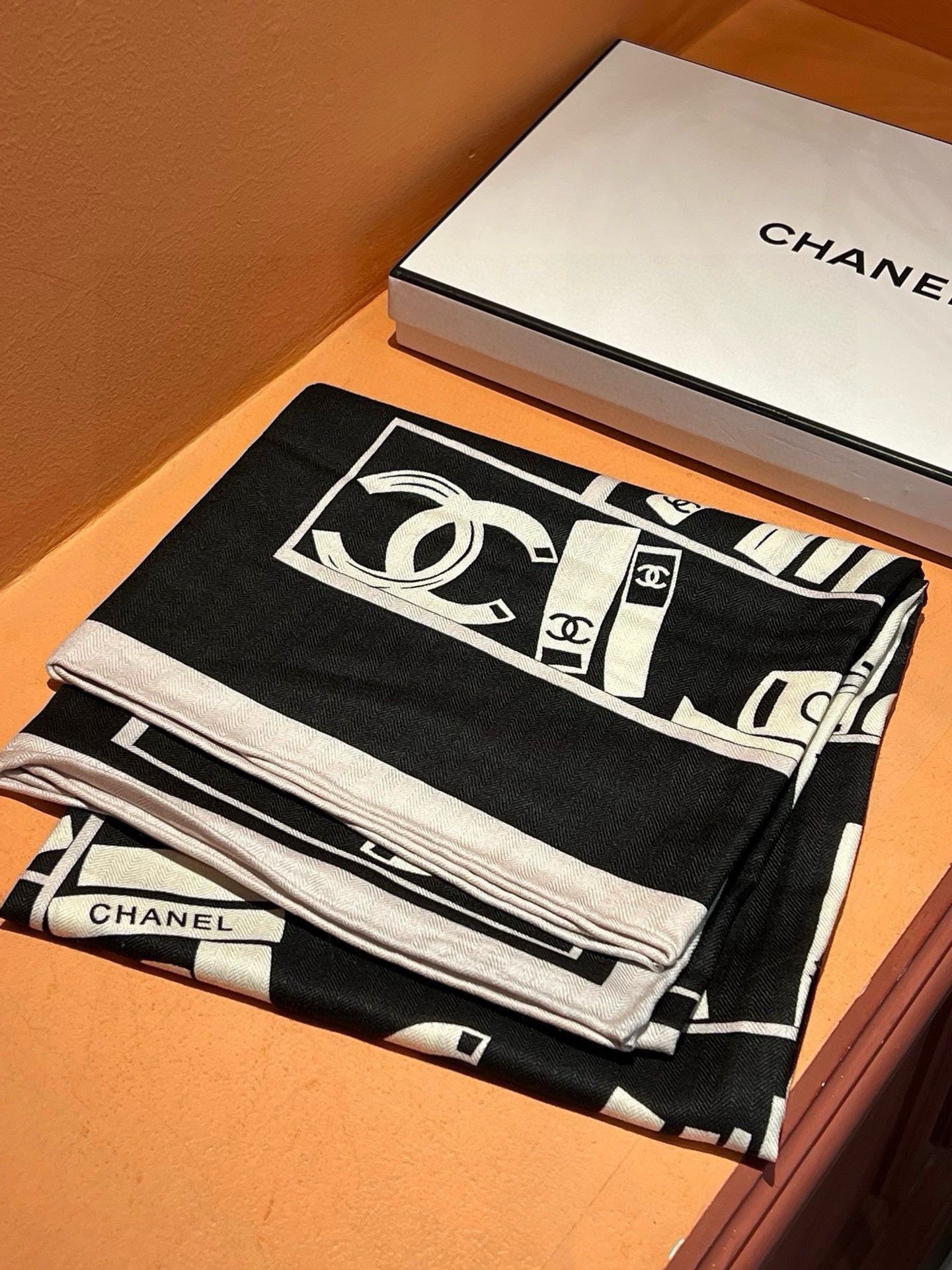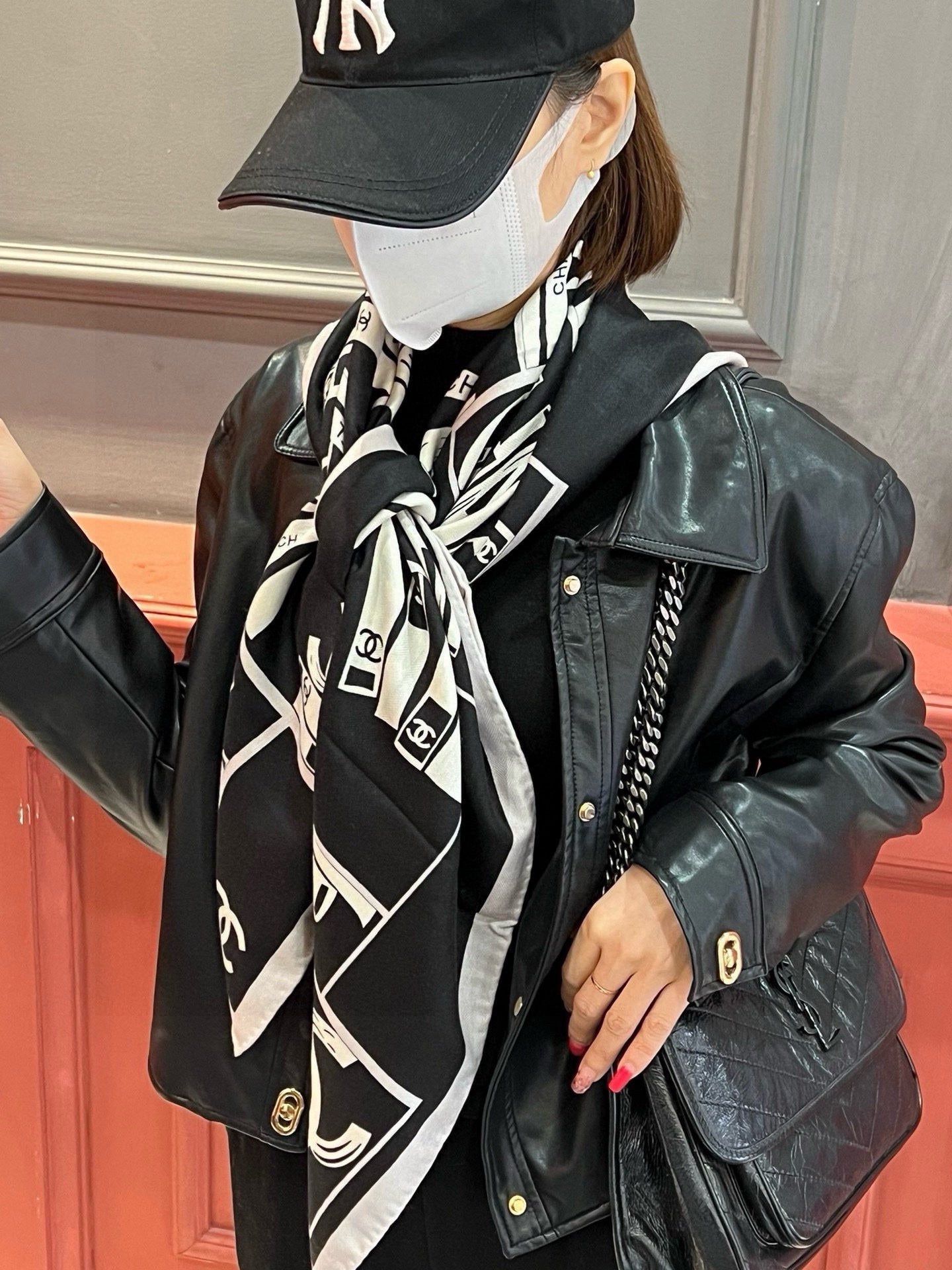 CC Square Scarf 110 CM In Black Mix White Cashmere Silk 221427