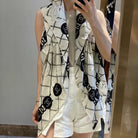 CC Square Scarf 110 CM In White Mix Black Camellia Print Cashmere Silk 296623