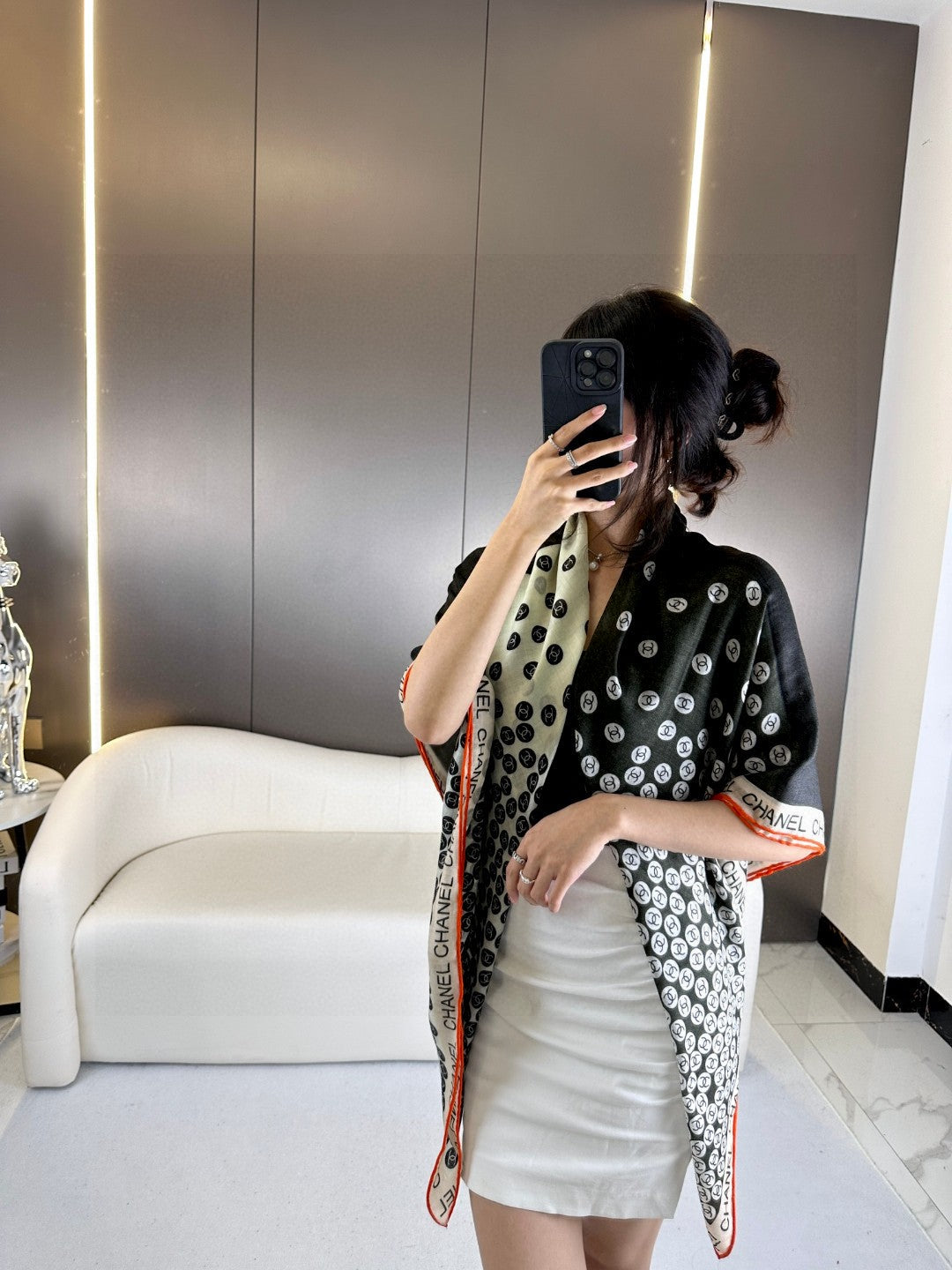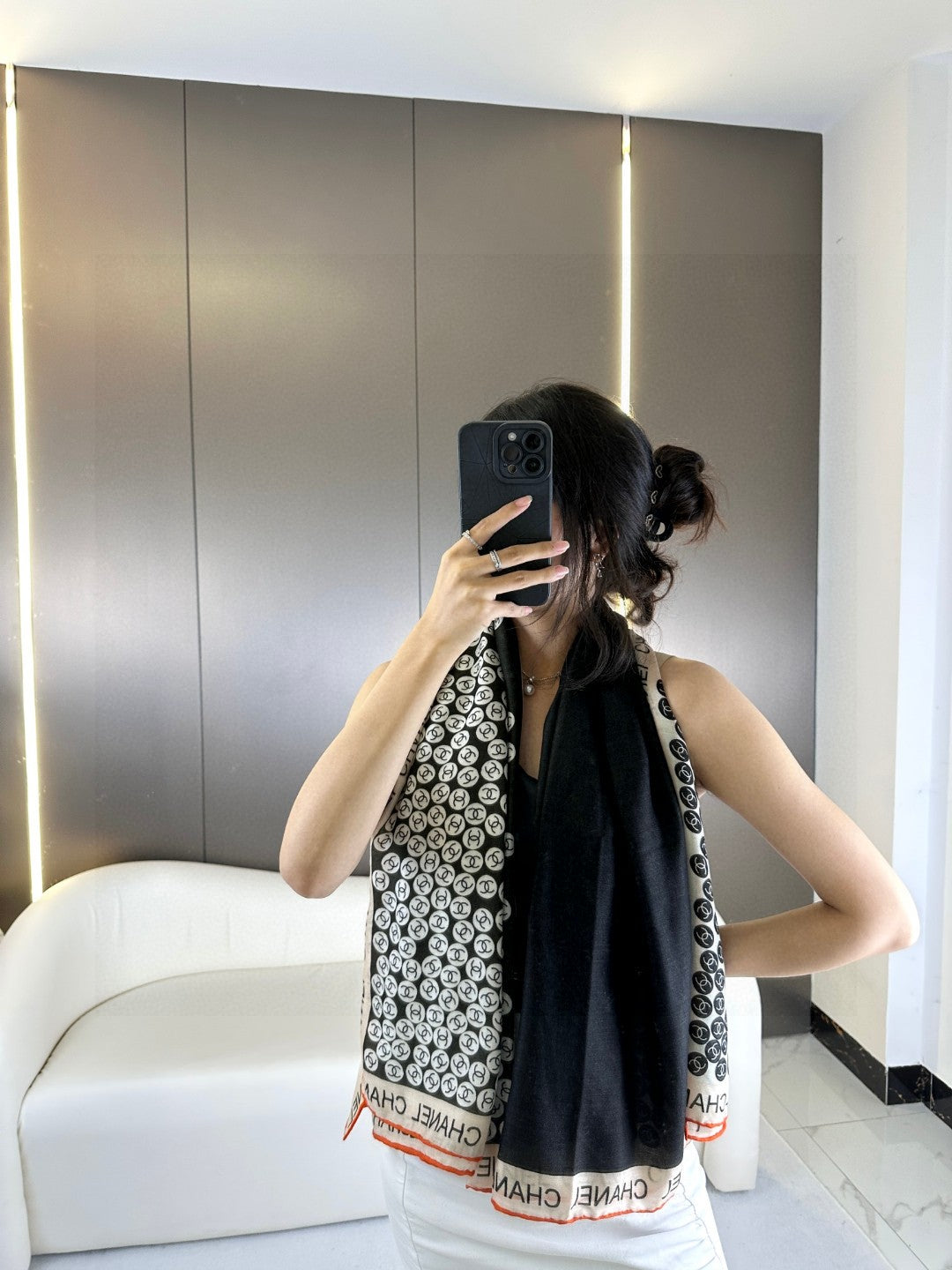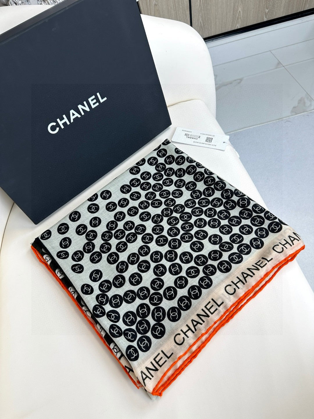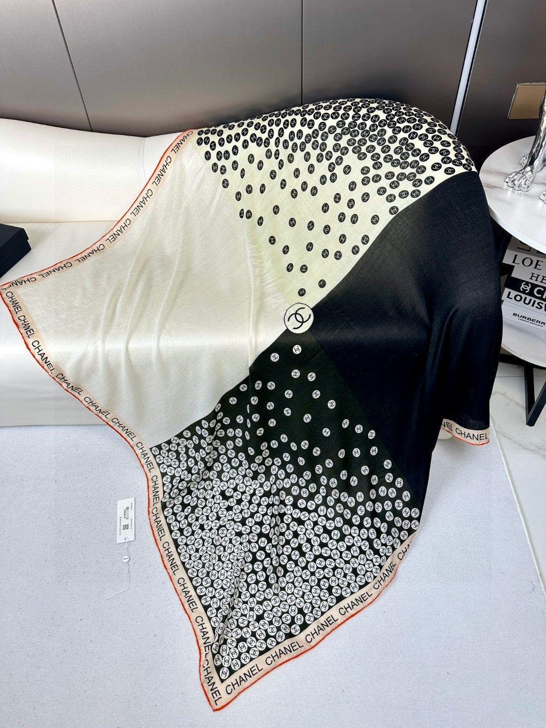 CC Square Scarf 140 CM In Black Mix White Cashmere 390937