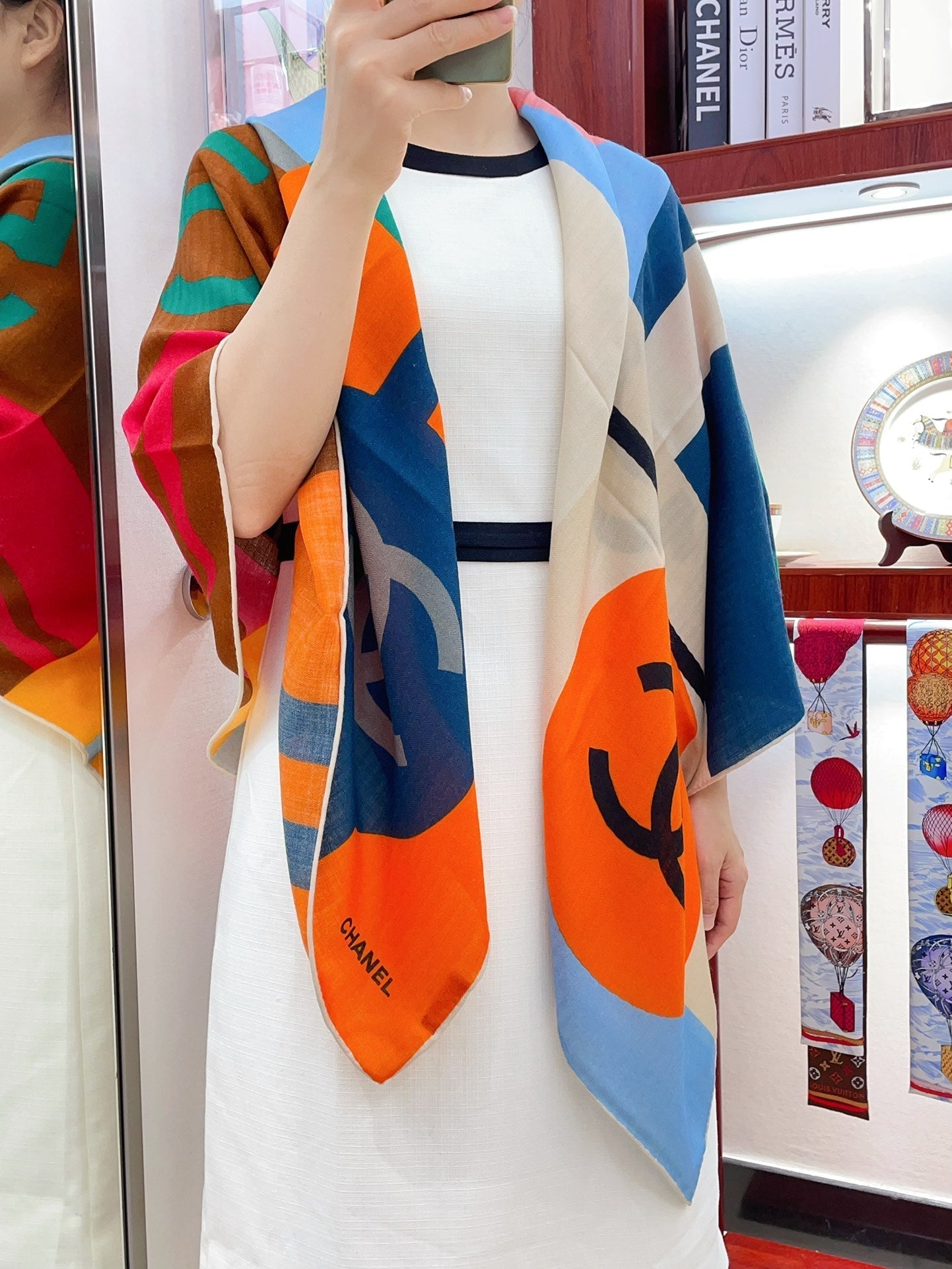 CC Square Scarf 140 CM In Colorful Cashmere Silk 376418