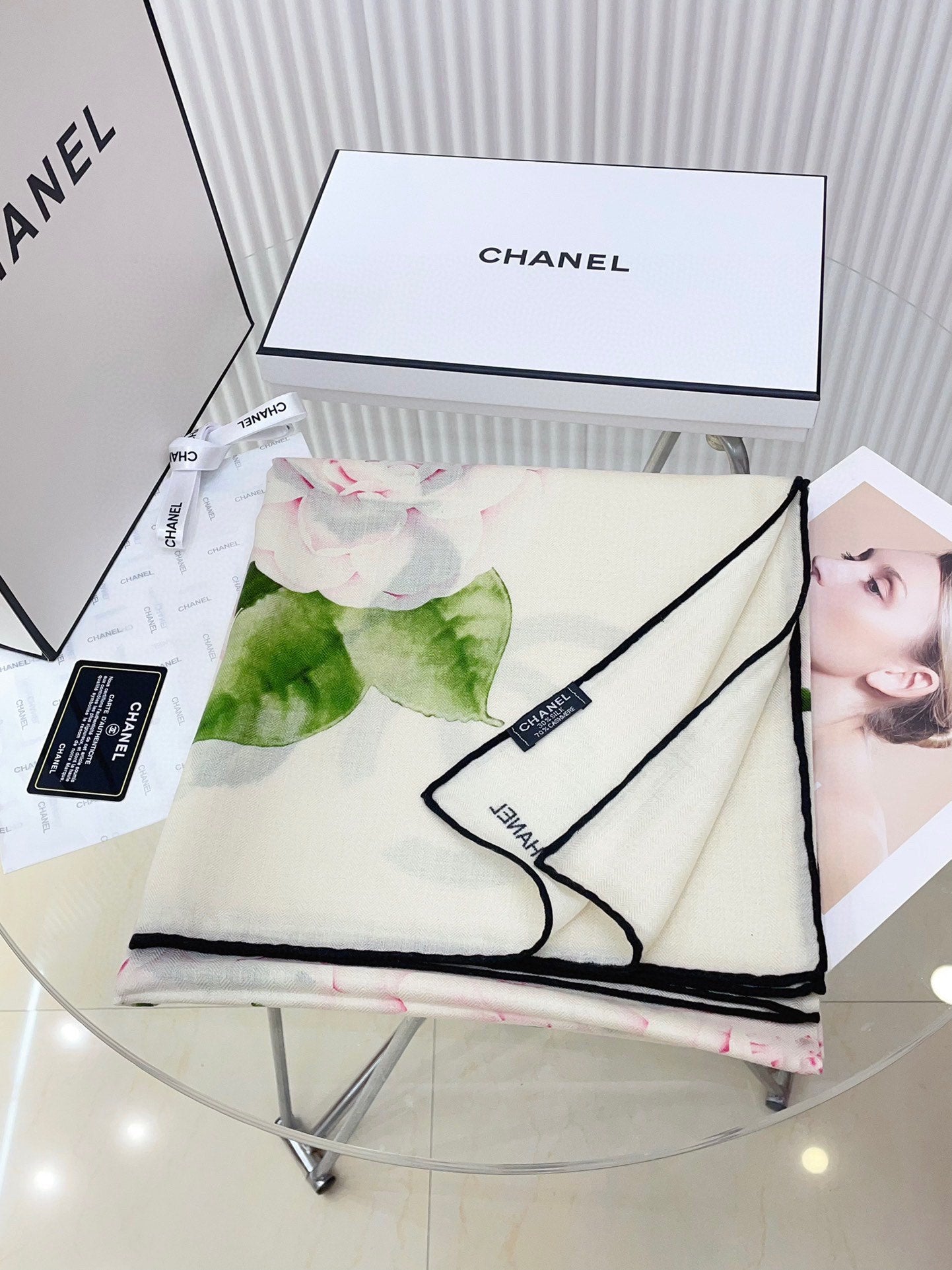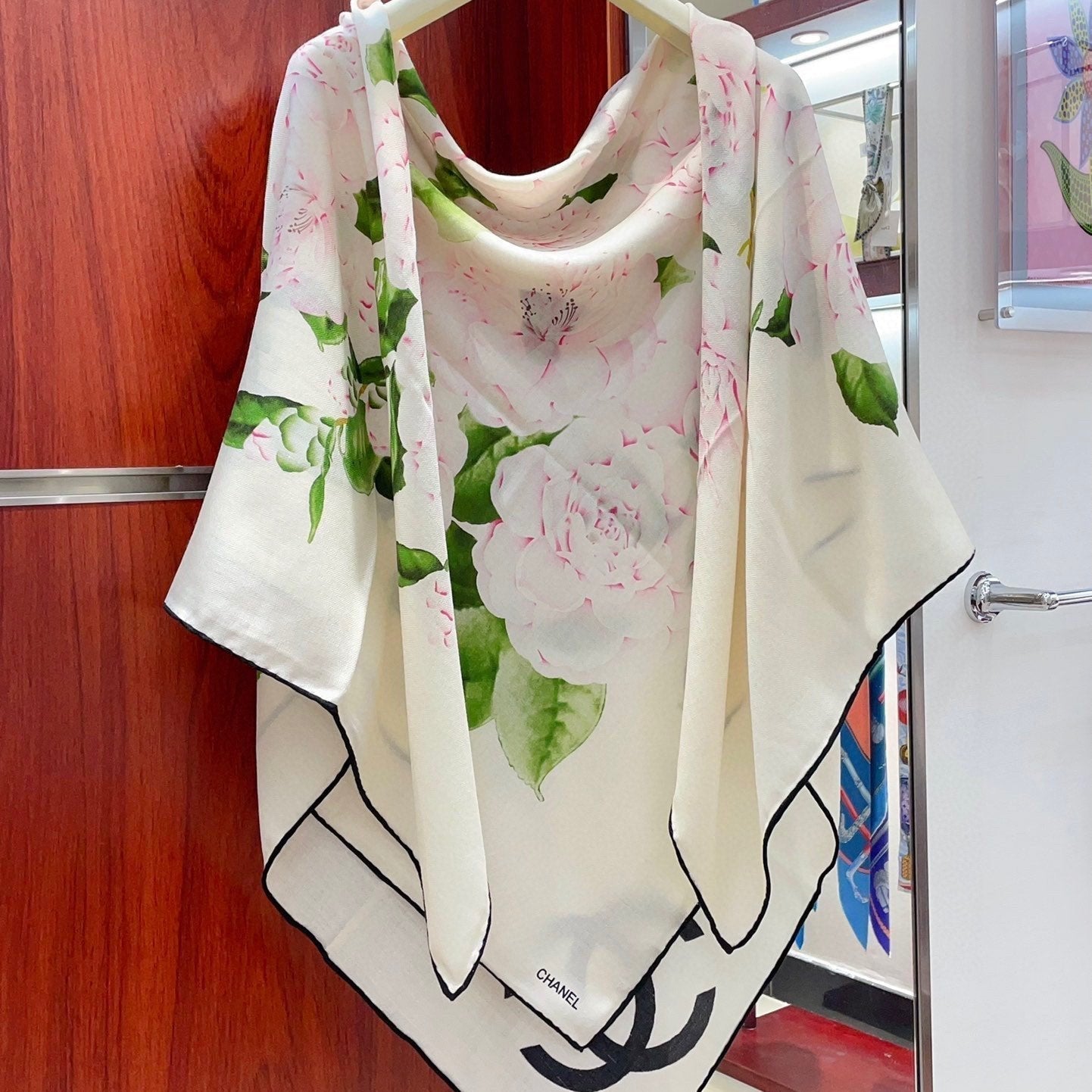 CC Square Scarf 140 CM In White Colorful Cashmere And Silk 418214
