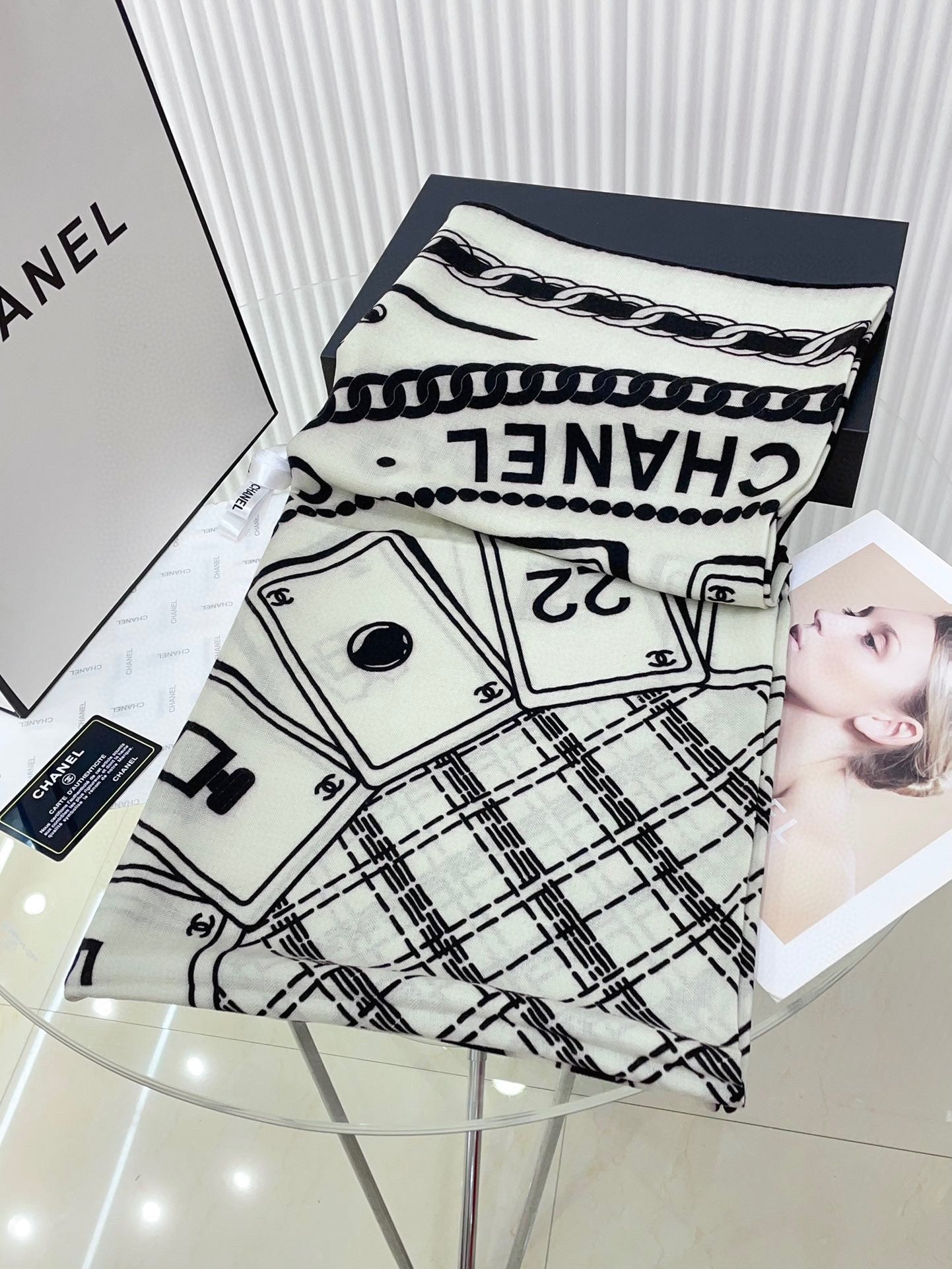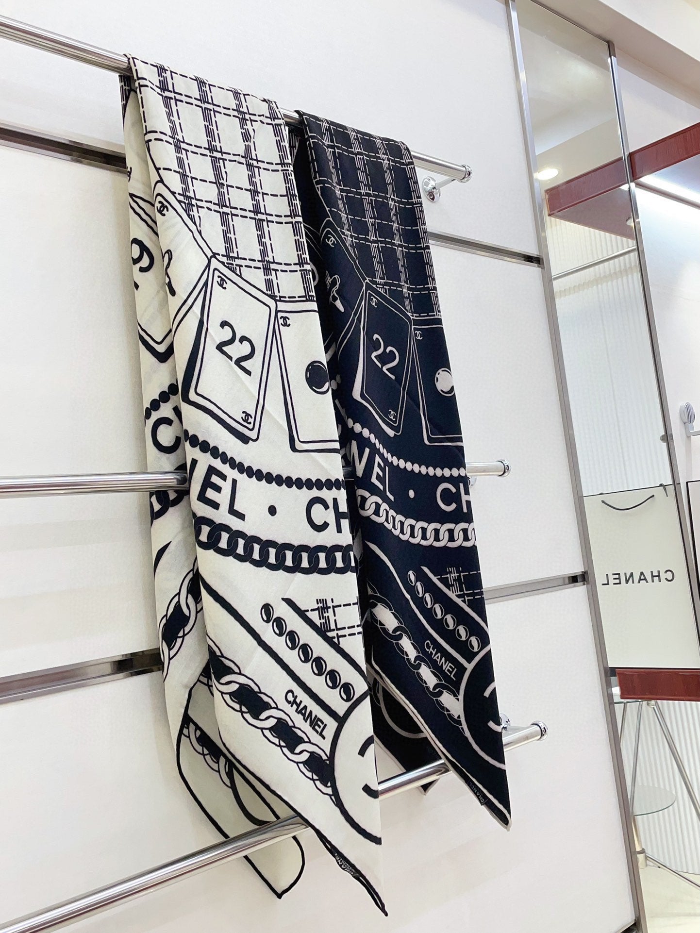 CC Square Scarf 140 CM In White Mix Black Cashmere And Silk 407279