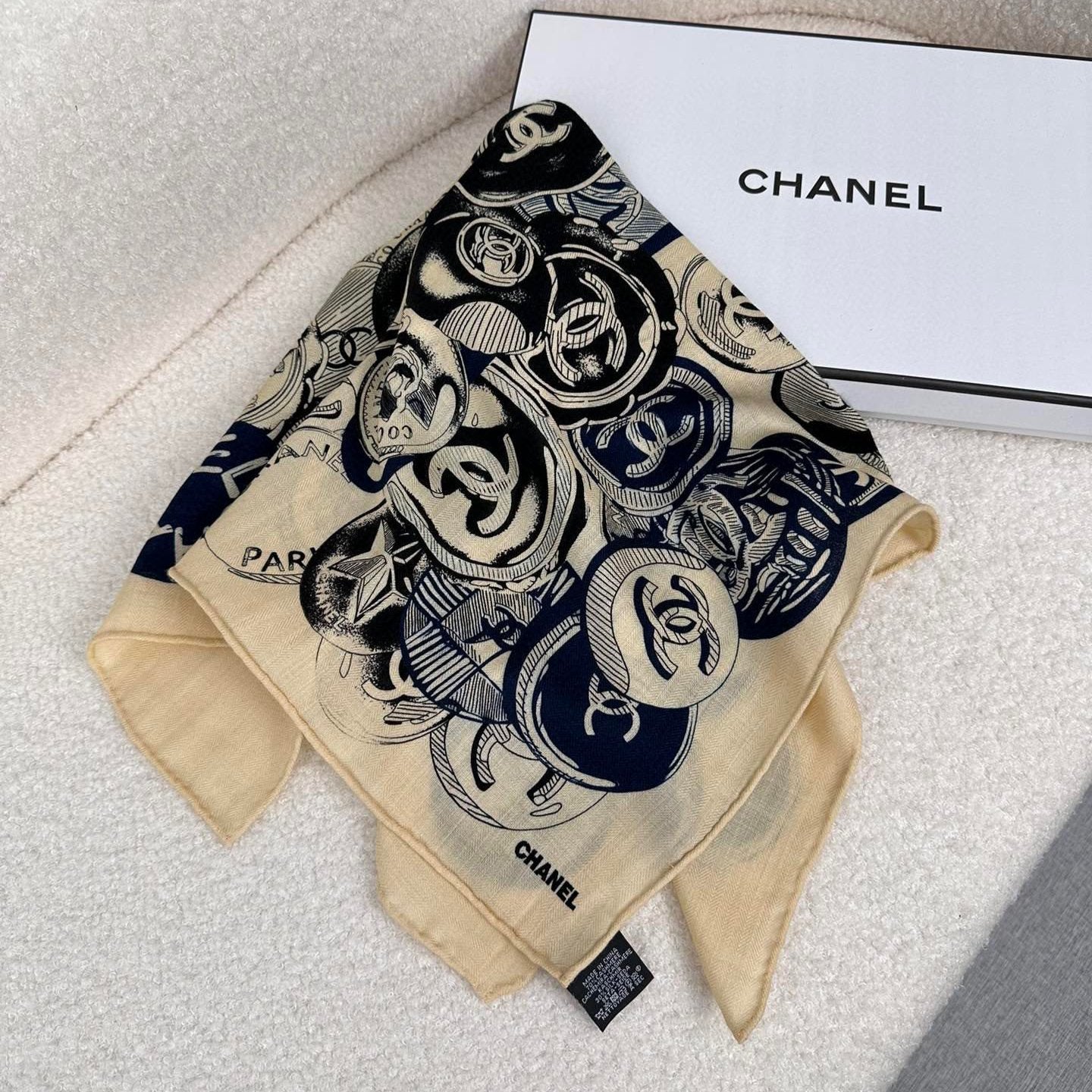 CC Square Scarf 70 CM In Beige Colorful Cashmere And Silk 399804