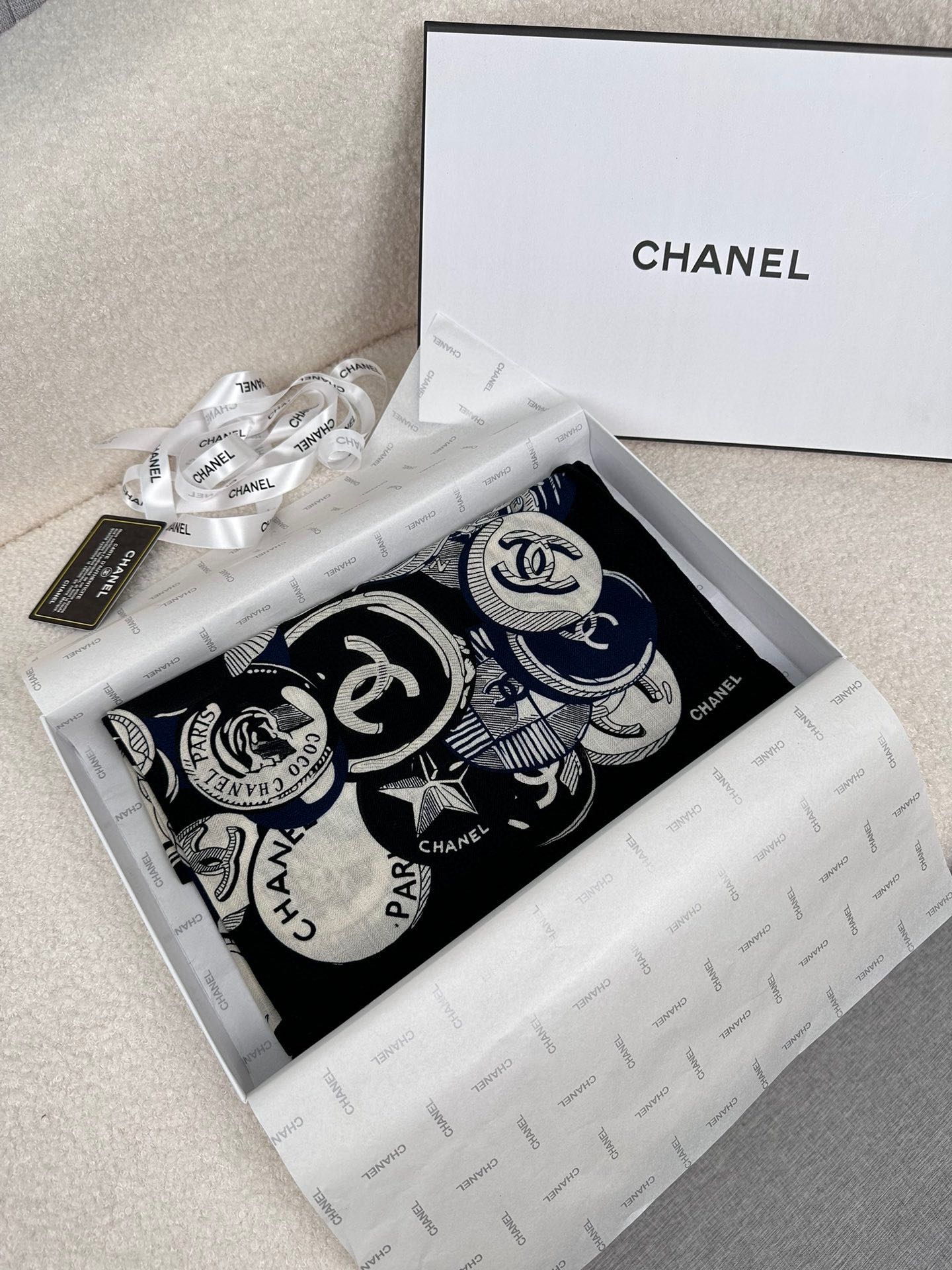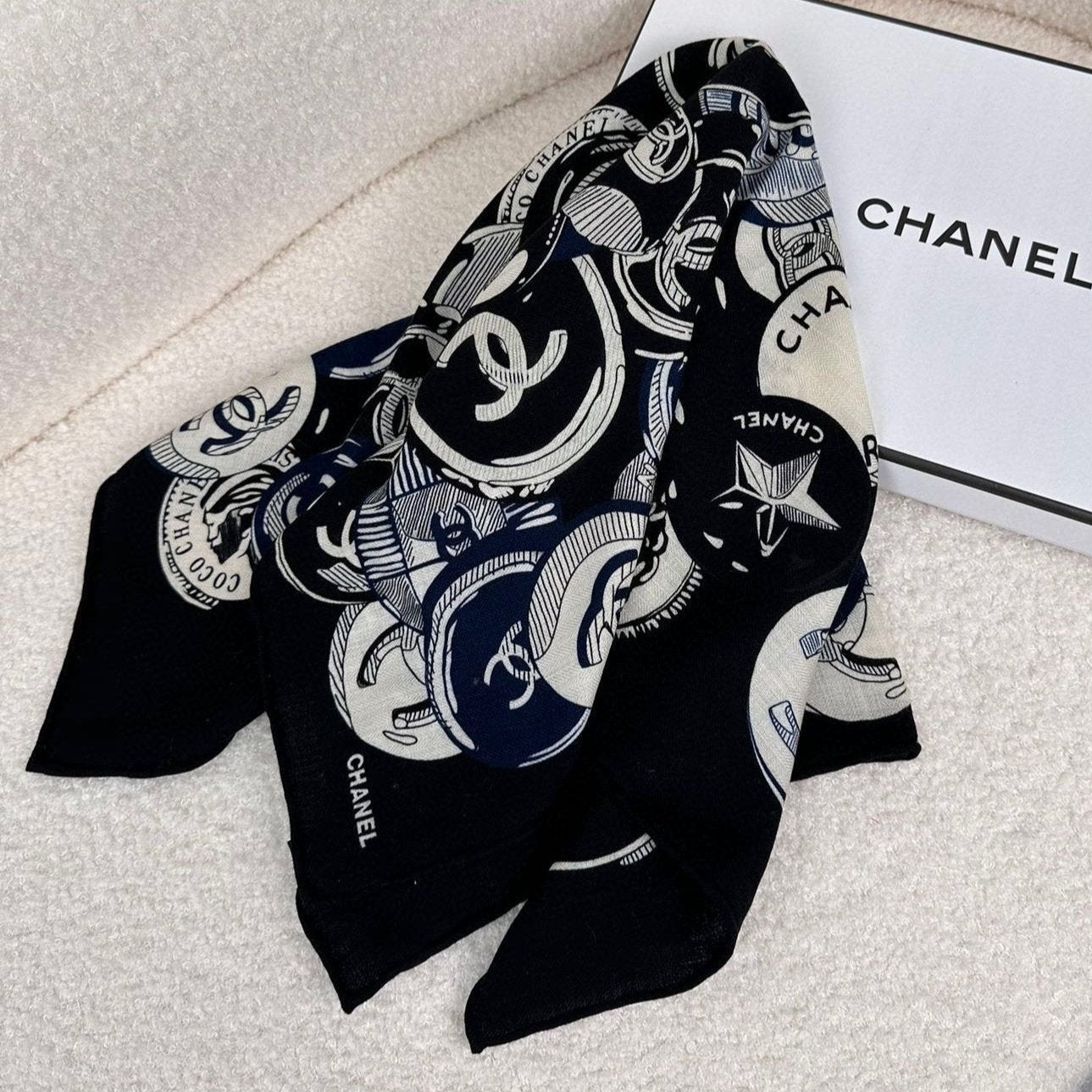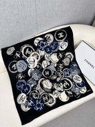 CC Square Scarf 70 CM In Black Colorful Cashmere And Silk 399802
