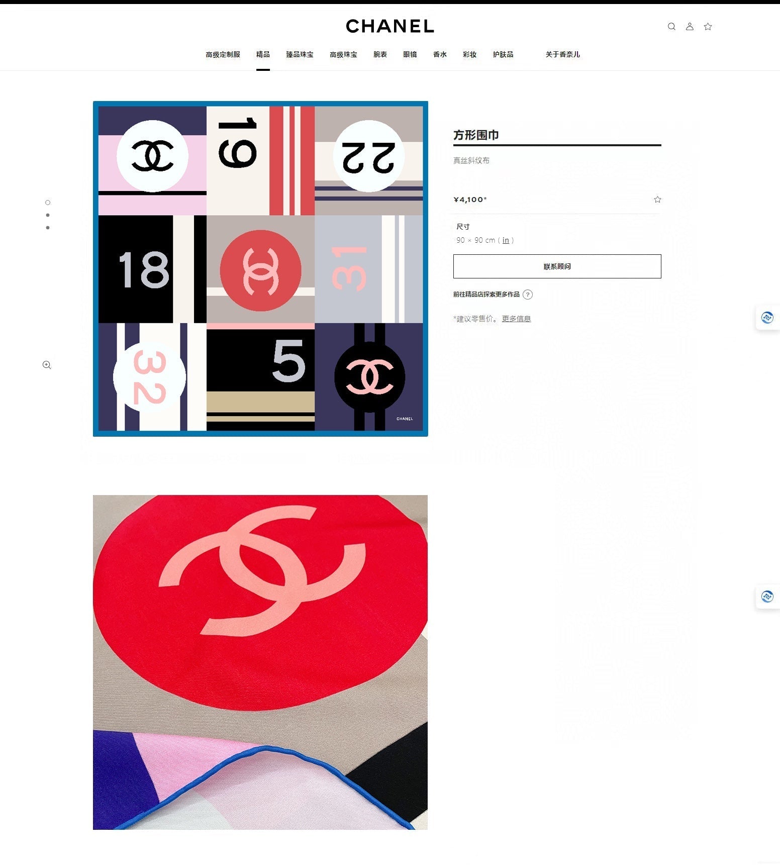 CC Square Scarf 90 CM In Colorful Silk Twill 177652