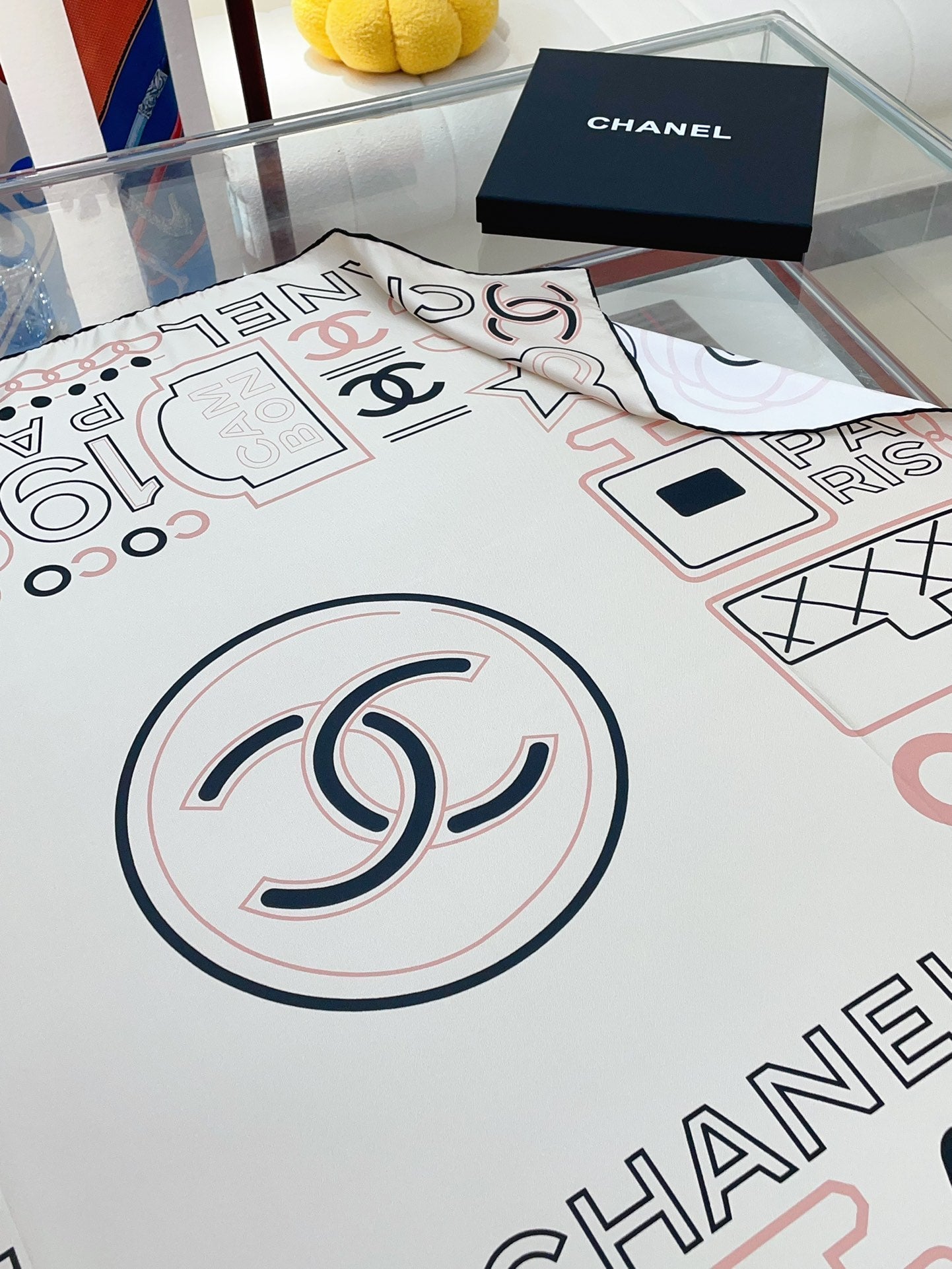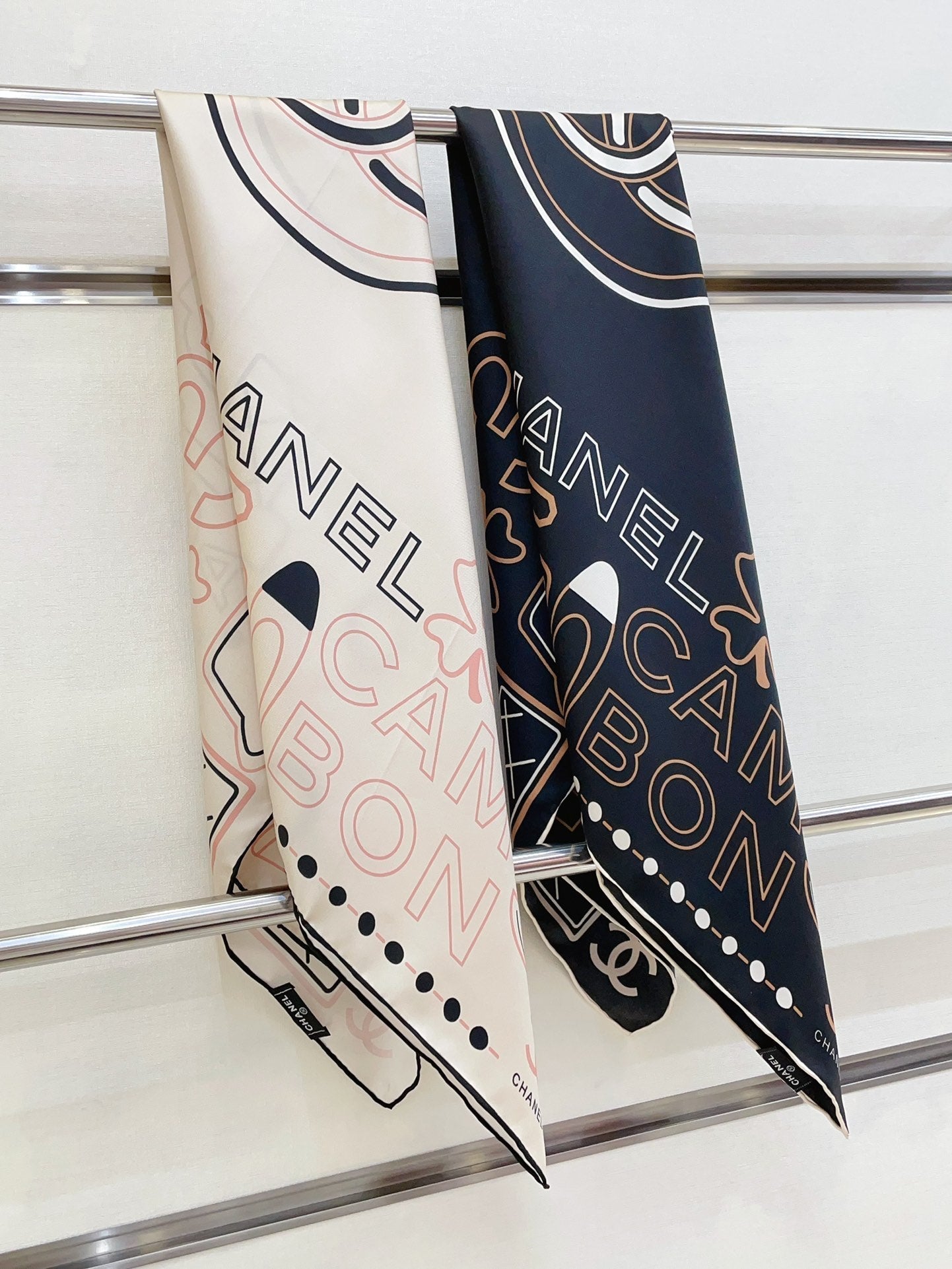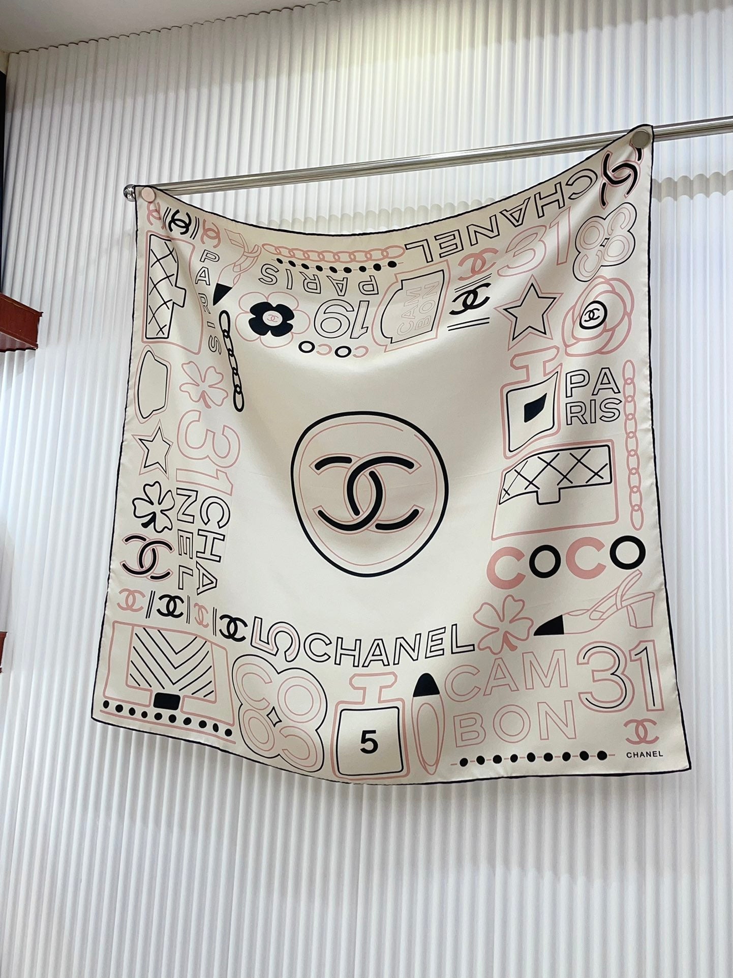CC Square Scarf 90 CM In White Mix Black Pink Silk Twill 165001
