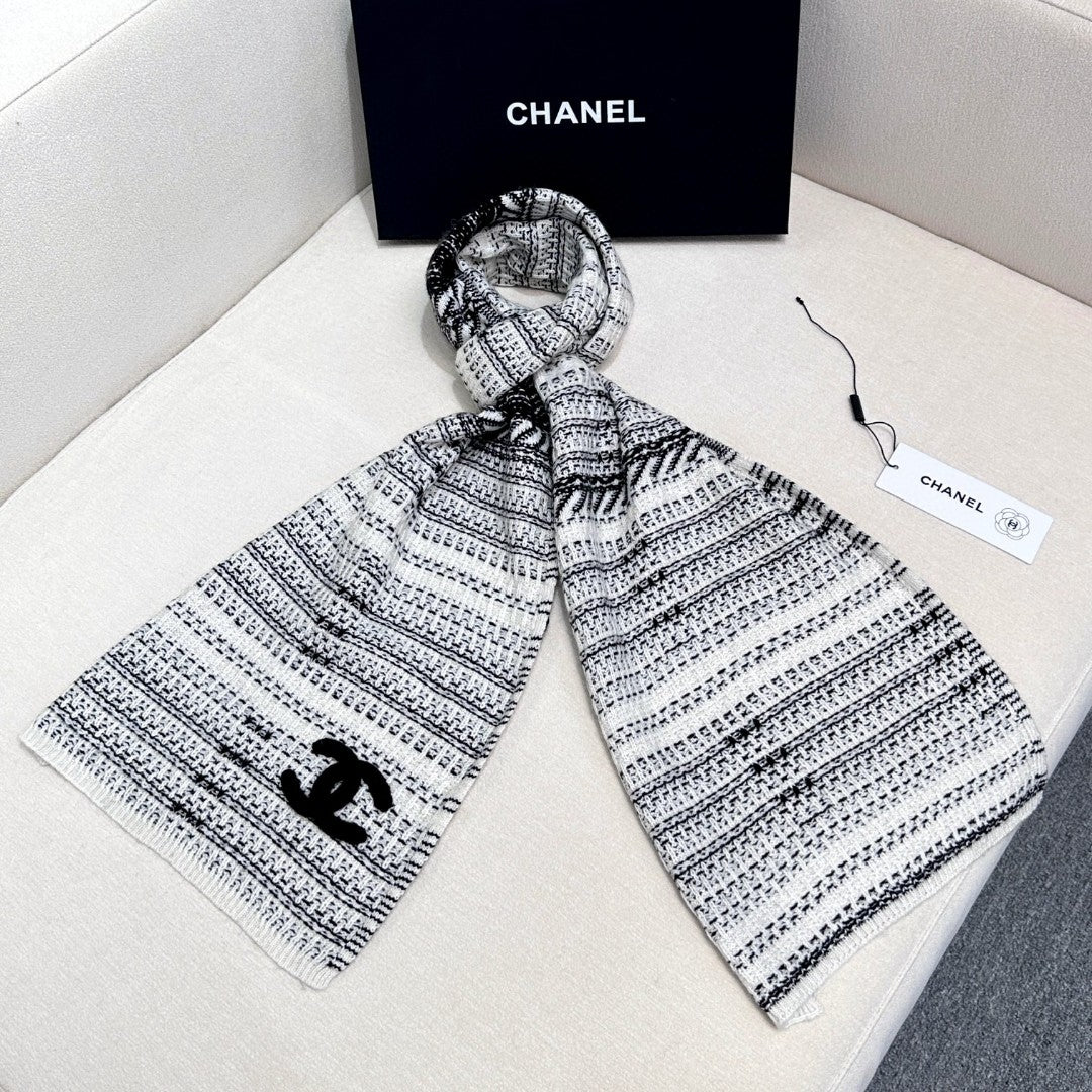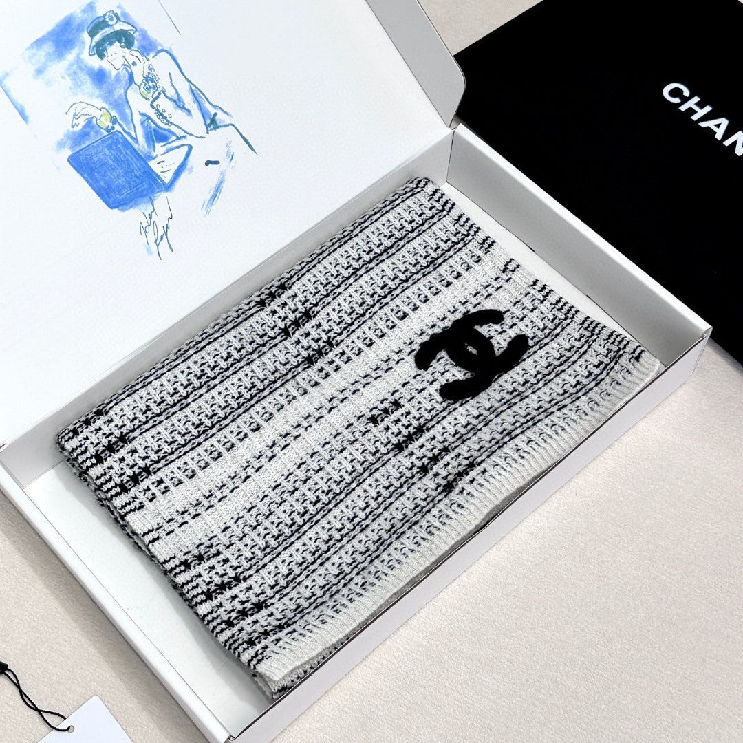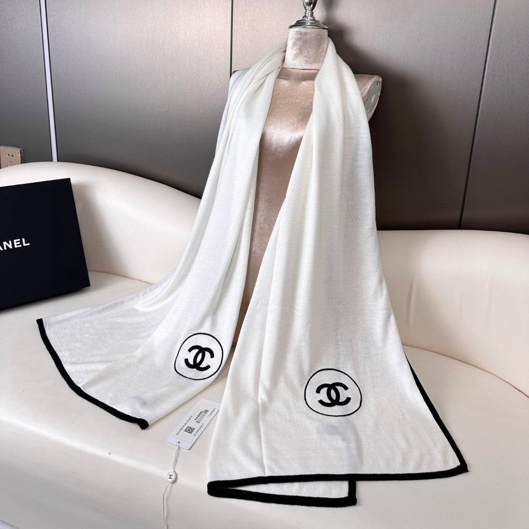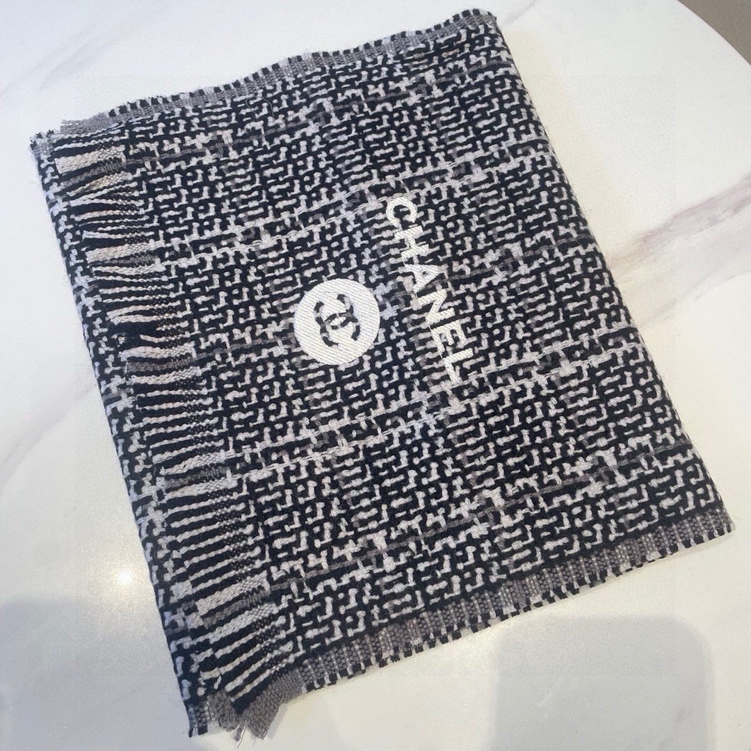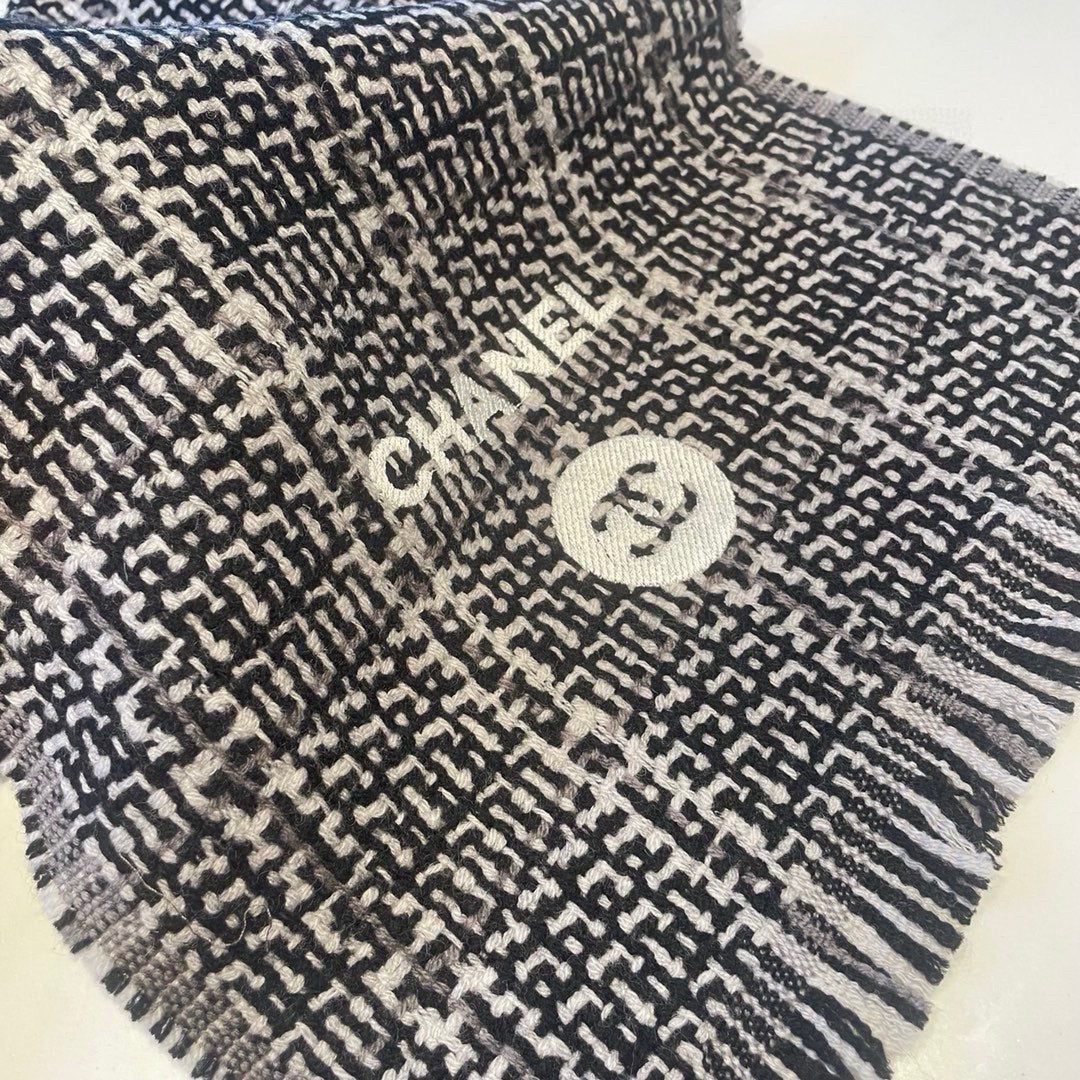 CC Scarf 195 CM White Mix Black Cashmere And Wool 418442