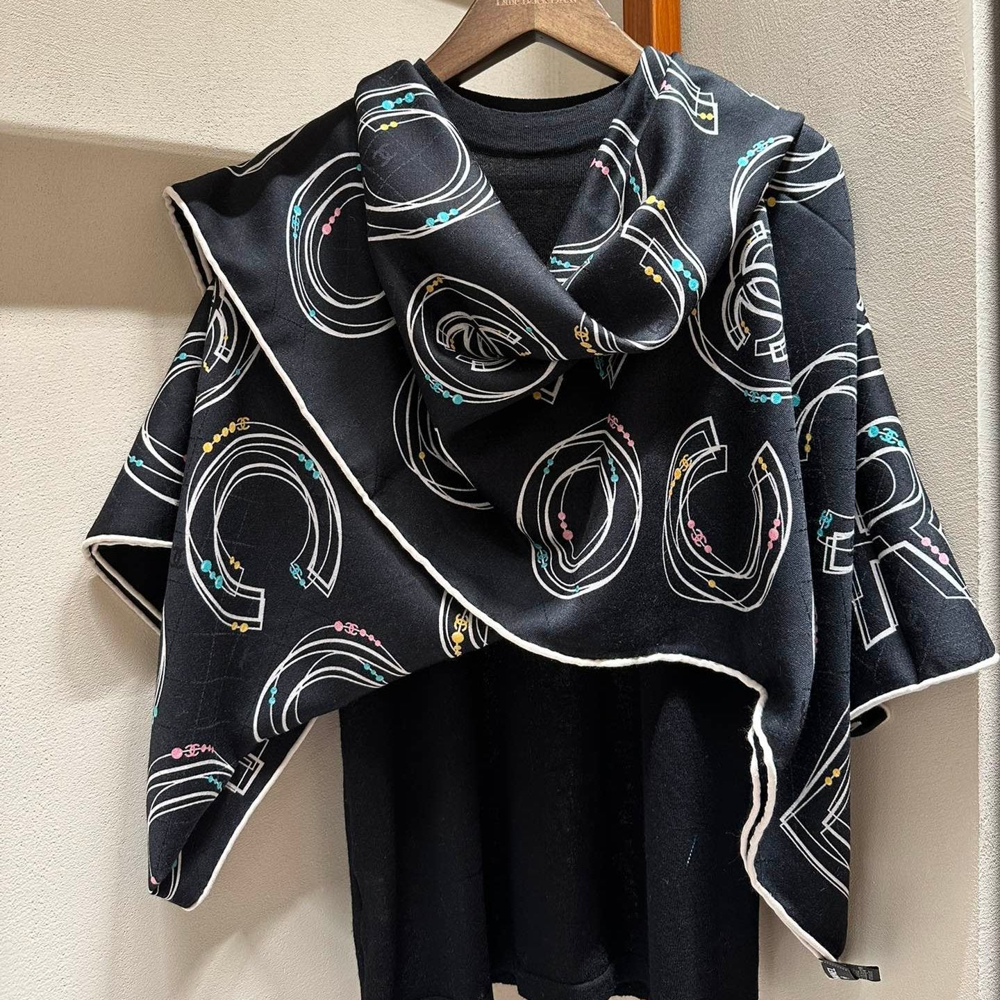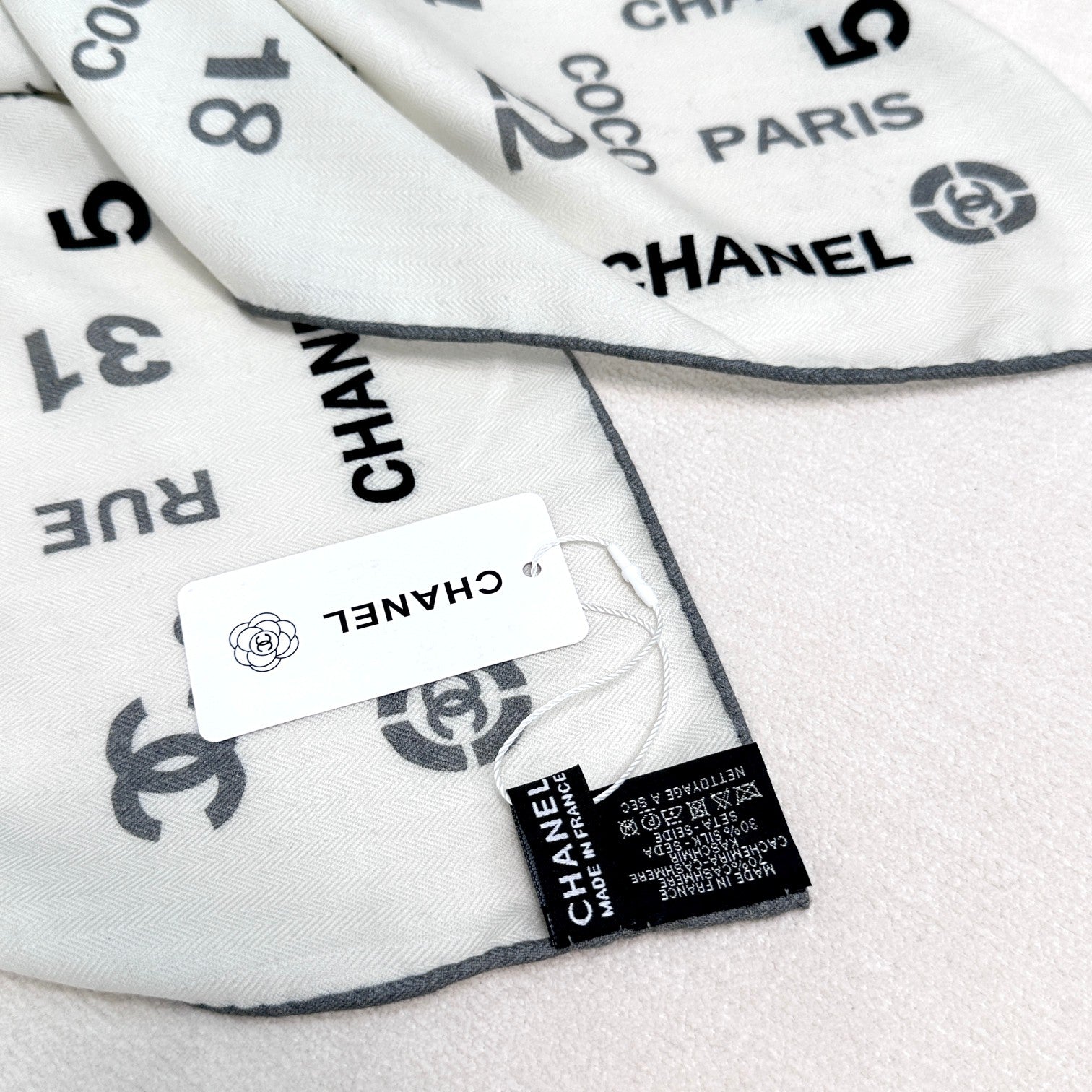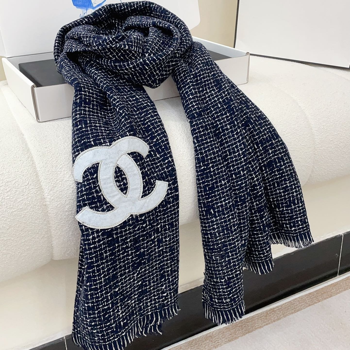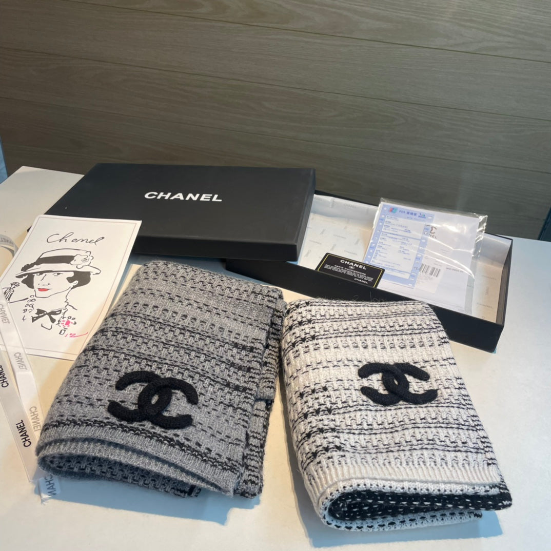 CC Scarf 195 CM White Mix Black Cashmere And Wool 418442