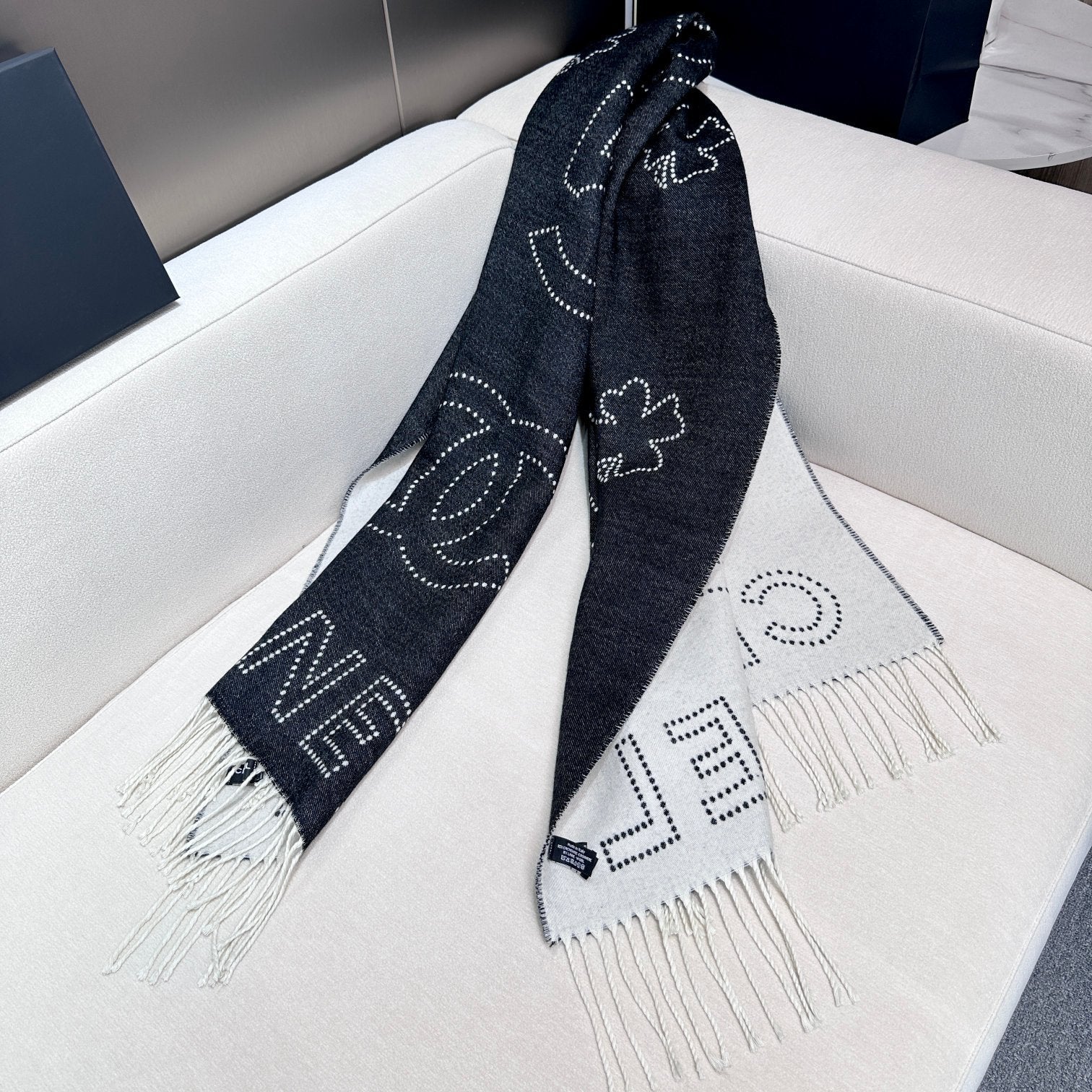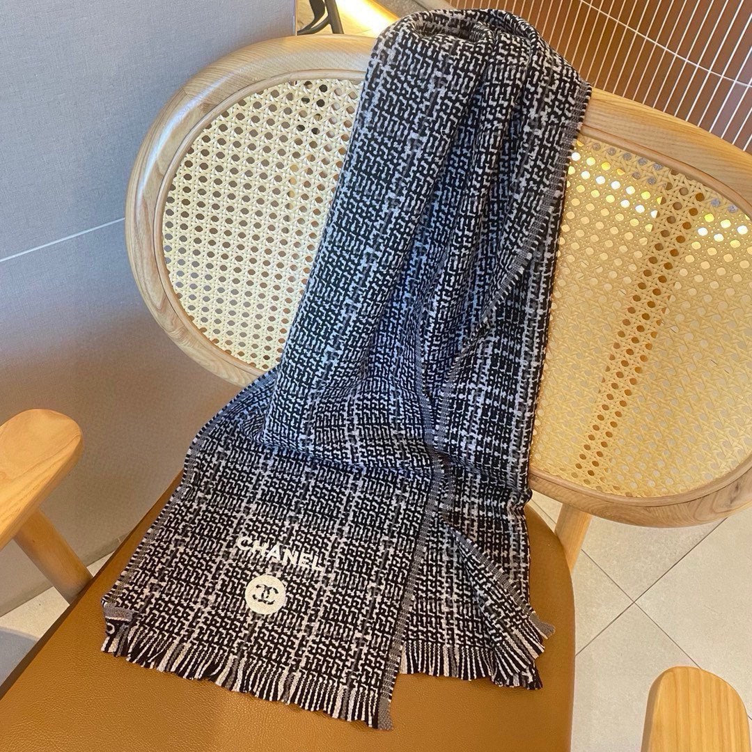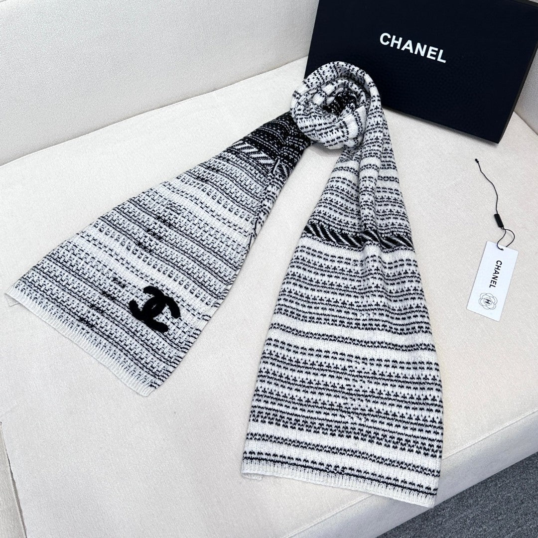 CC Scarf 180 CM In Black White Cashmere 421359
