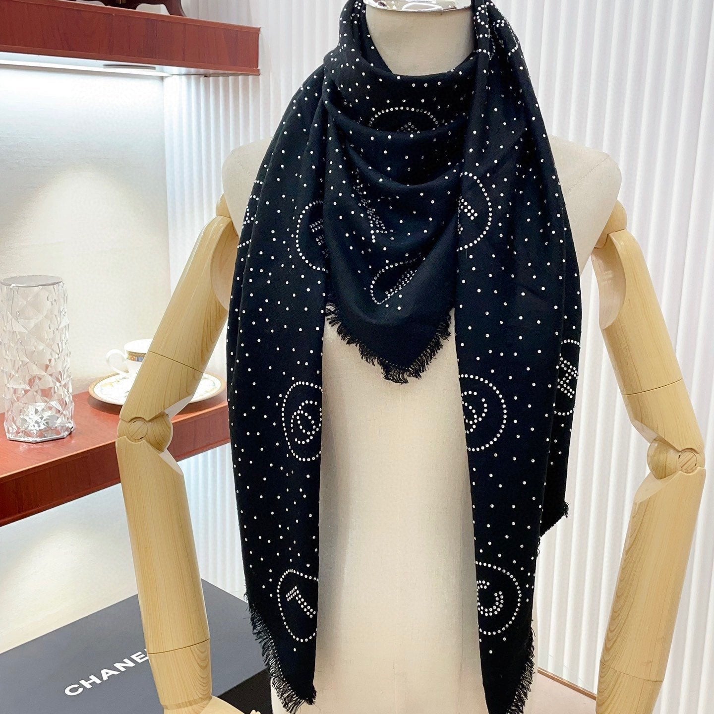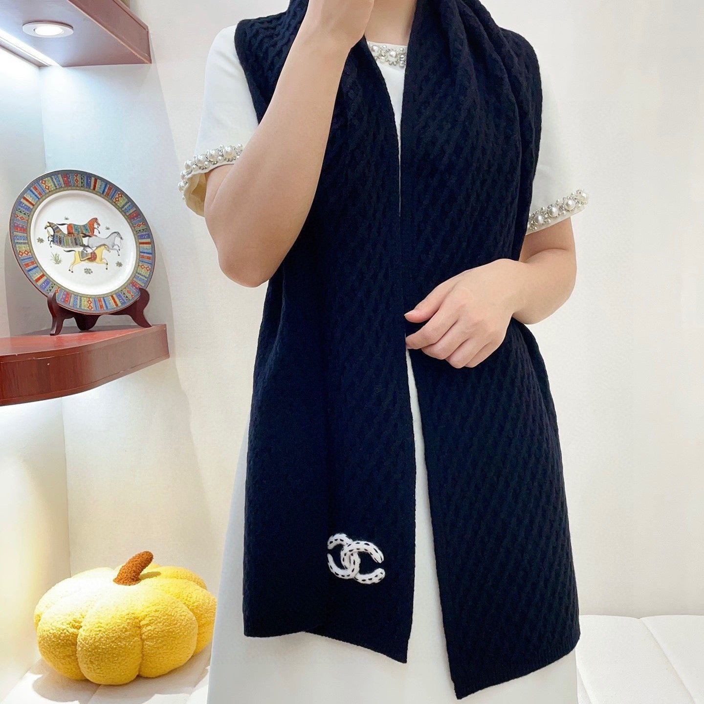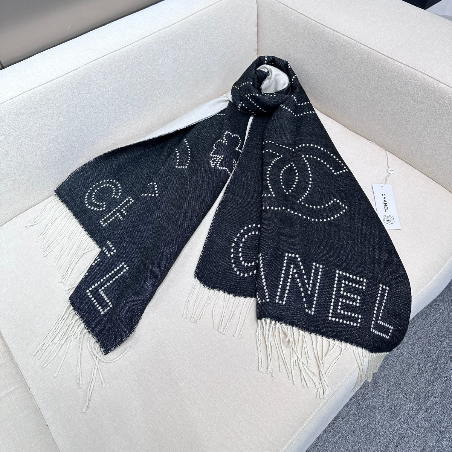 CC Scarf 180 CM In Black White Cashmere 421359