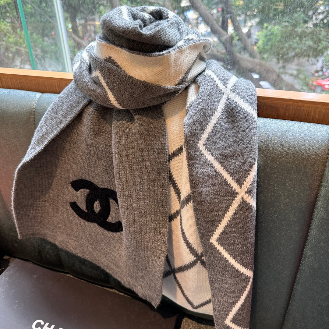 CC Scarf 180 CM In Grey Black Wool 421442