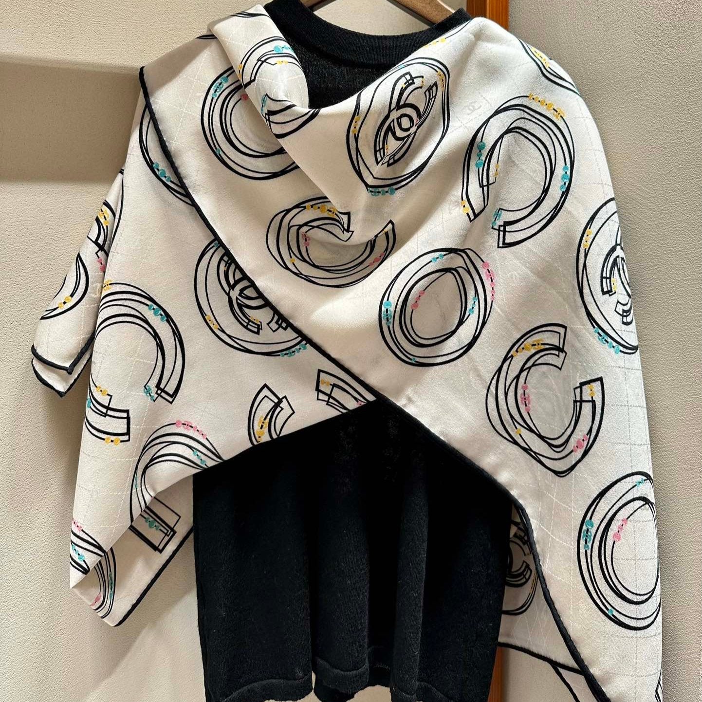 CC Square Scarf 140 CM In White Black Silk 422757