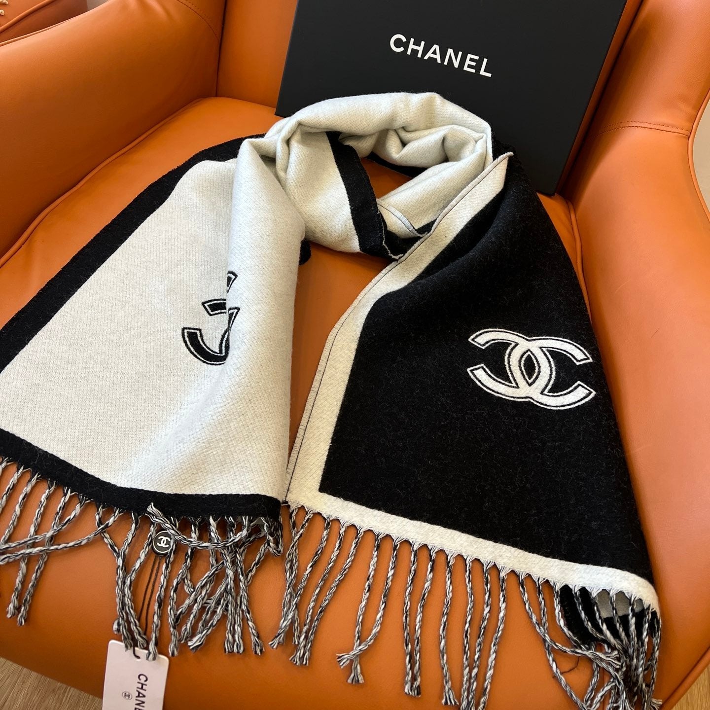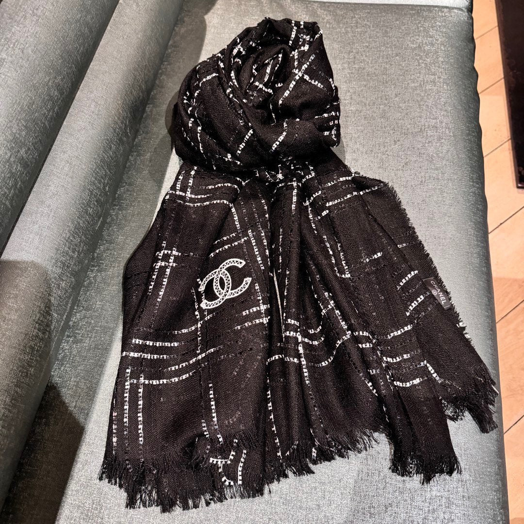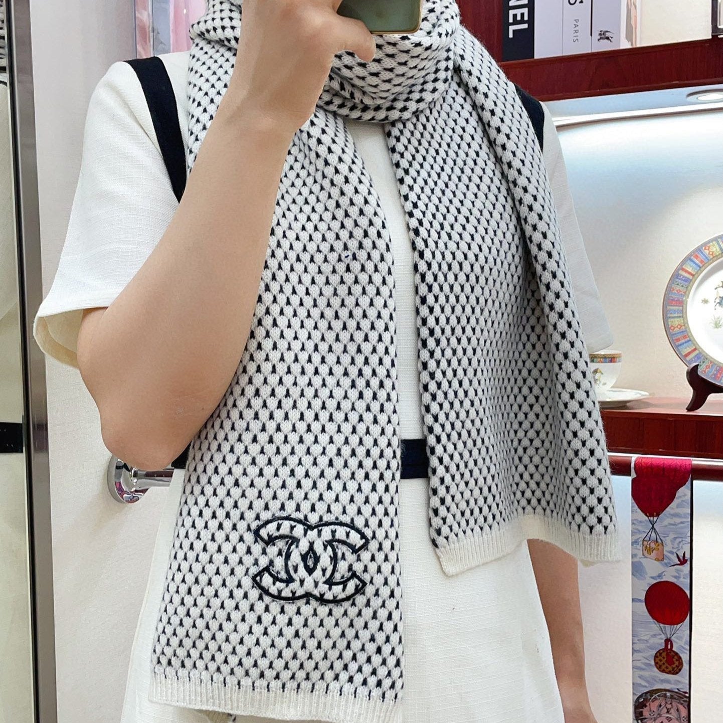 CC Scarf 220 CM In Black Grey Mix White Cashmere 389887