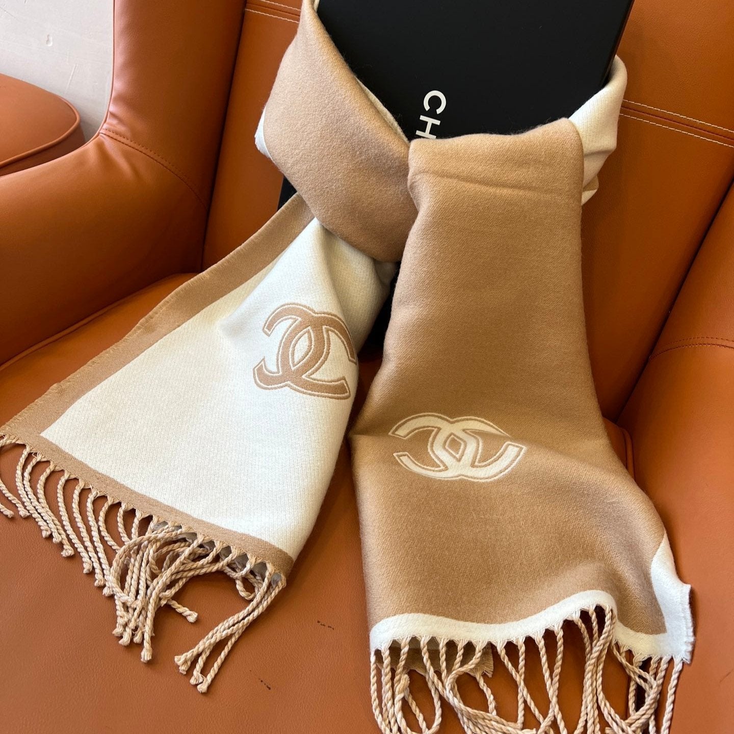 CC Scarf 200 CM In Light Beige Mix Dark Beige Cashmere Silk 396446