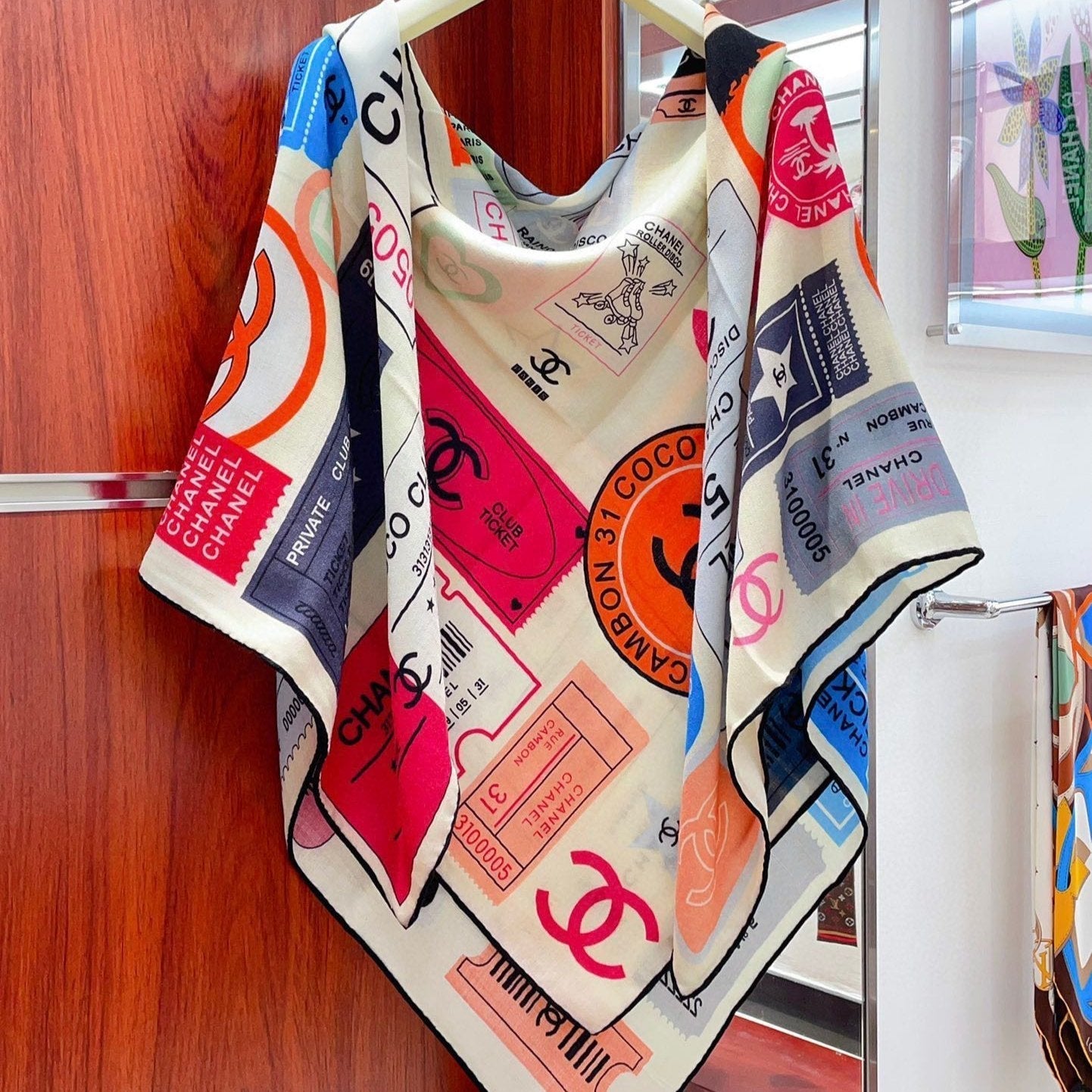 CC Square Scarf 140 CM In Multicolored Cashmere And Silk 388152