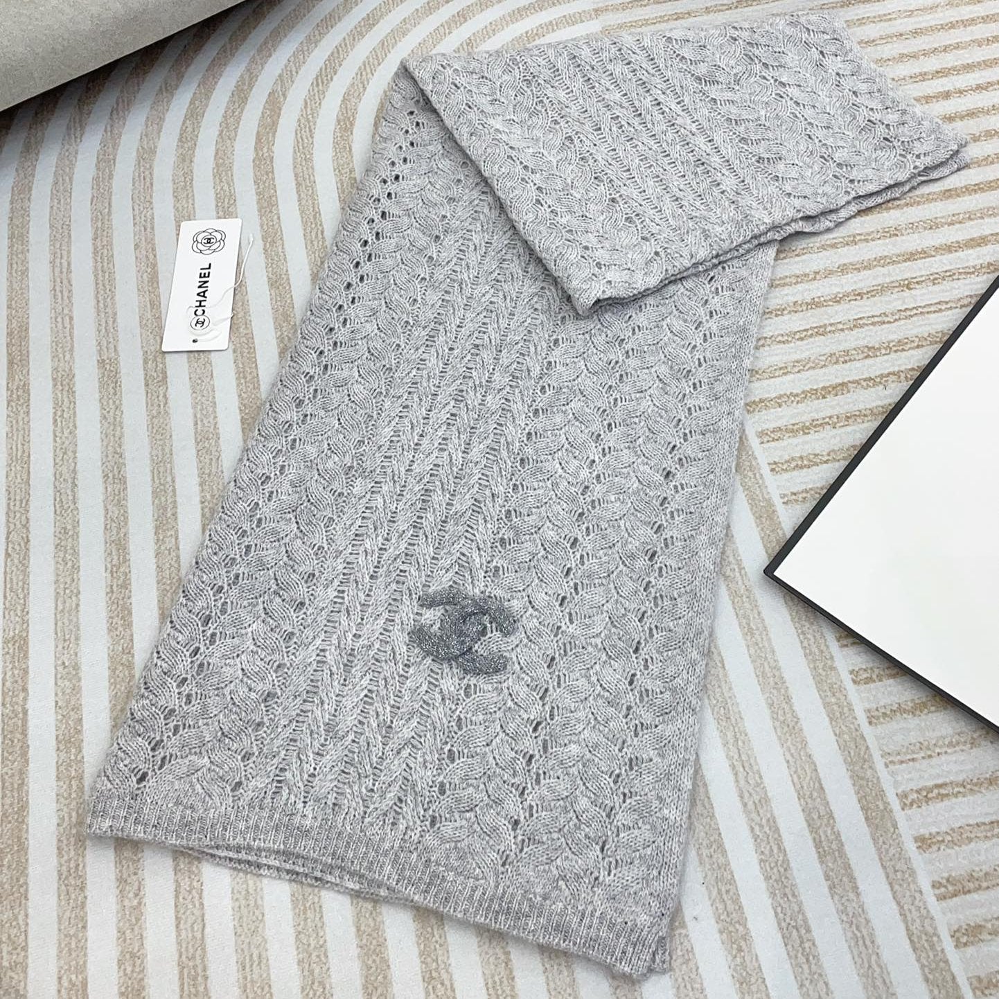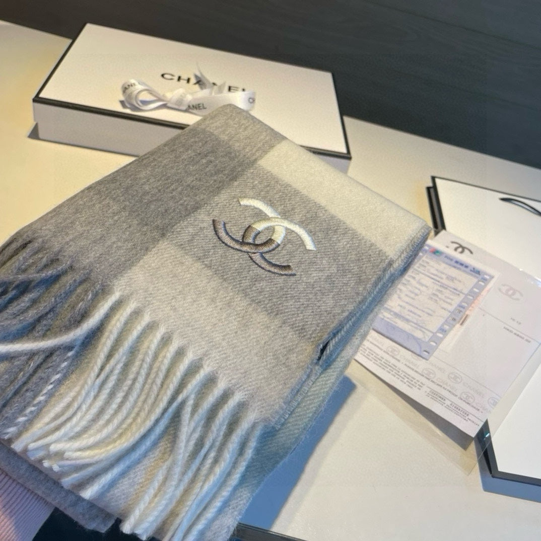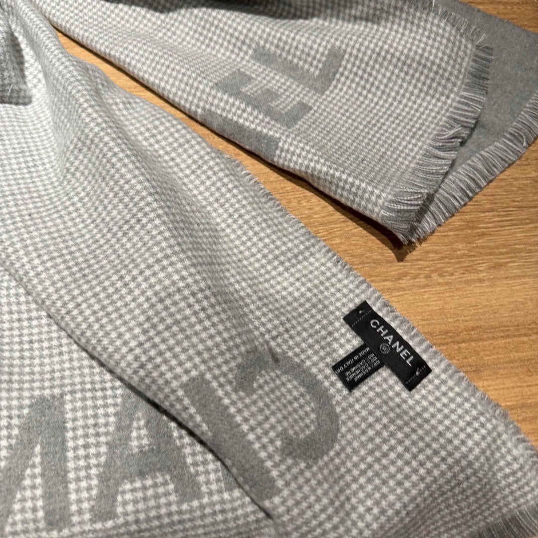 CC Scarf 185 CM In Grey Serrated Shape Cashmere 422860