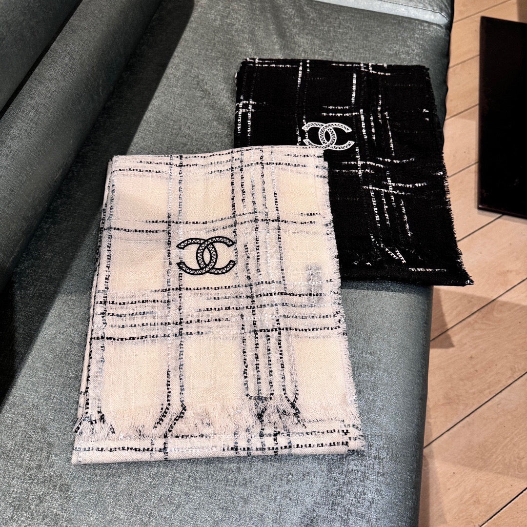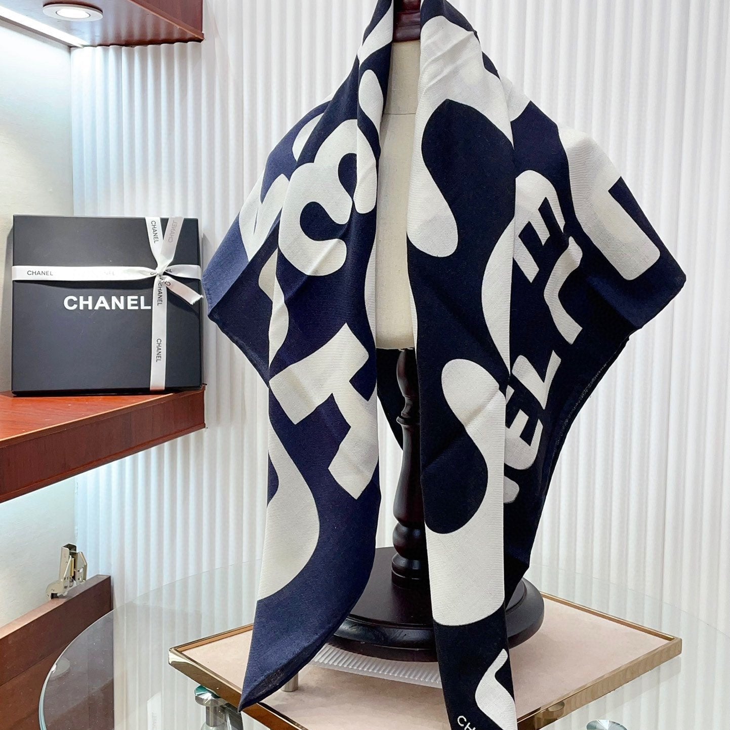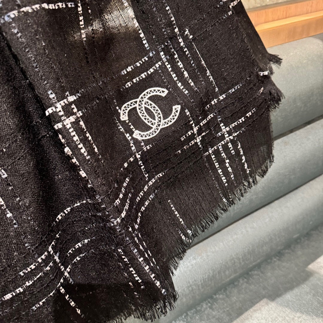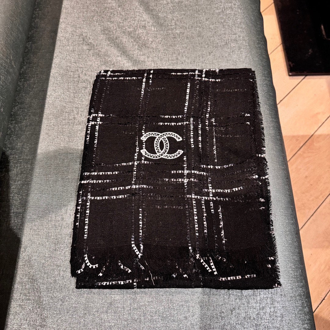 CC Square Scarf 140 CM In Black Mix White Cashmere And Silk 398280