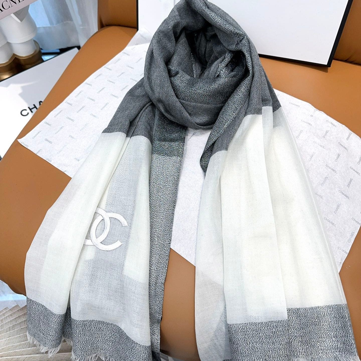 CC Scarf 200 CM In Grey Mix White Cashmere Silk 416880