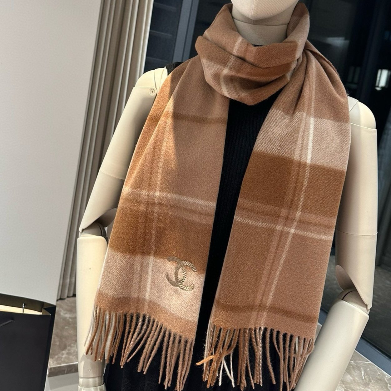CC Scarf 190 CM In Brown White Mix Yellow Serrated Shape Cashmere 387911