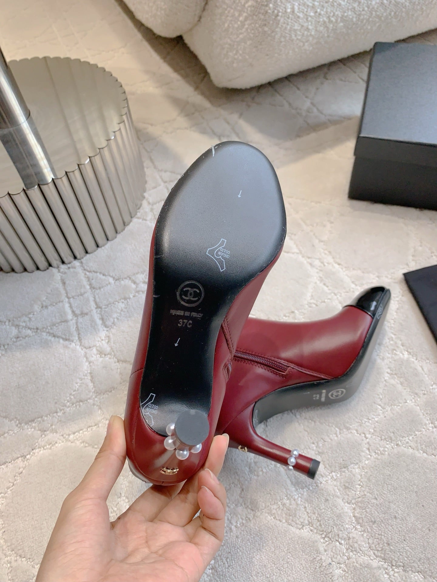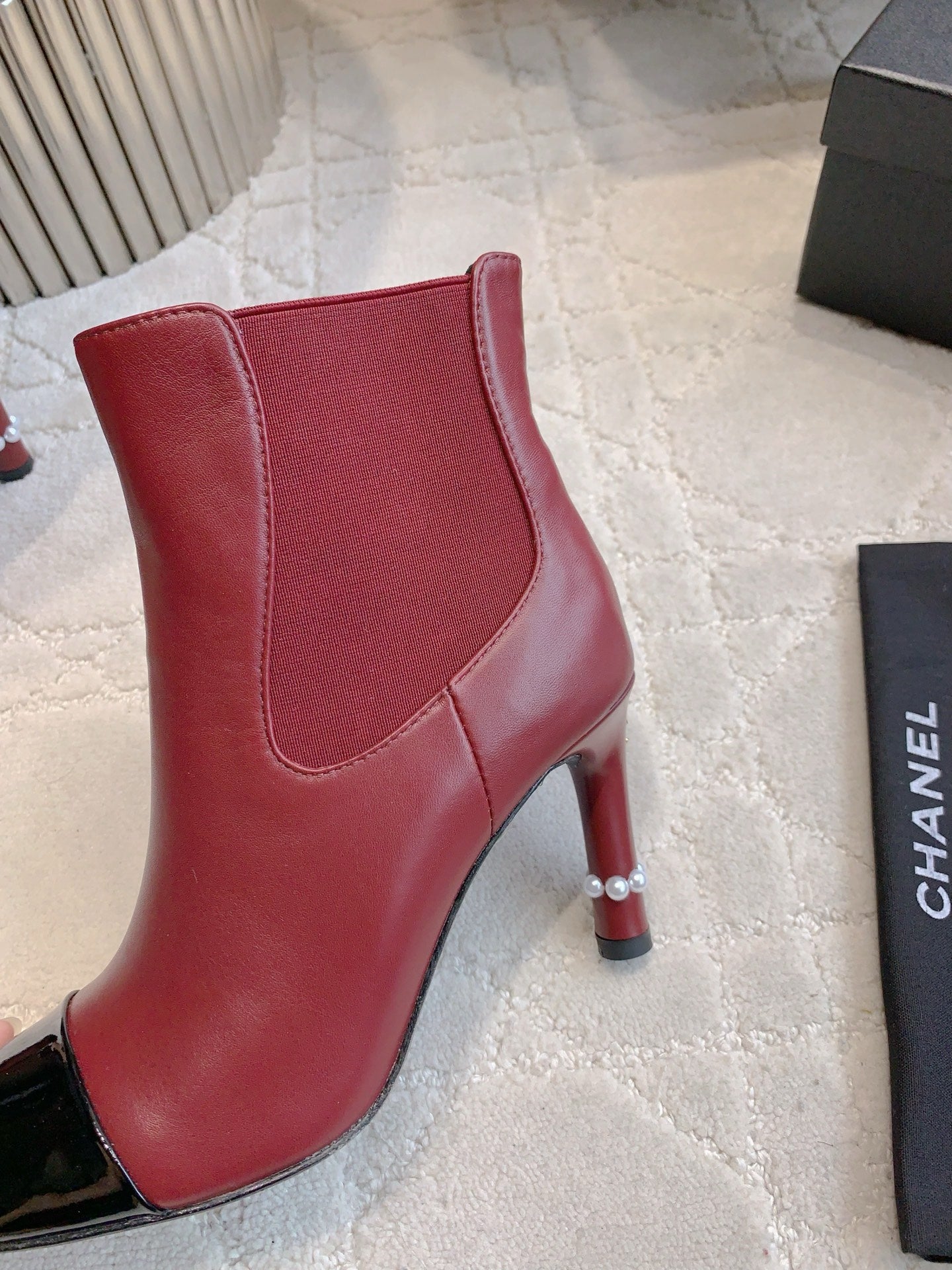 CC 25 Pearl Heel Boot Burgundy Black Calfskin 516654