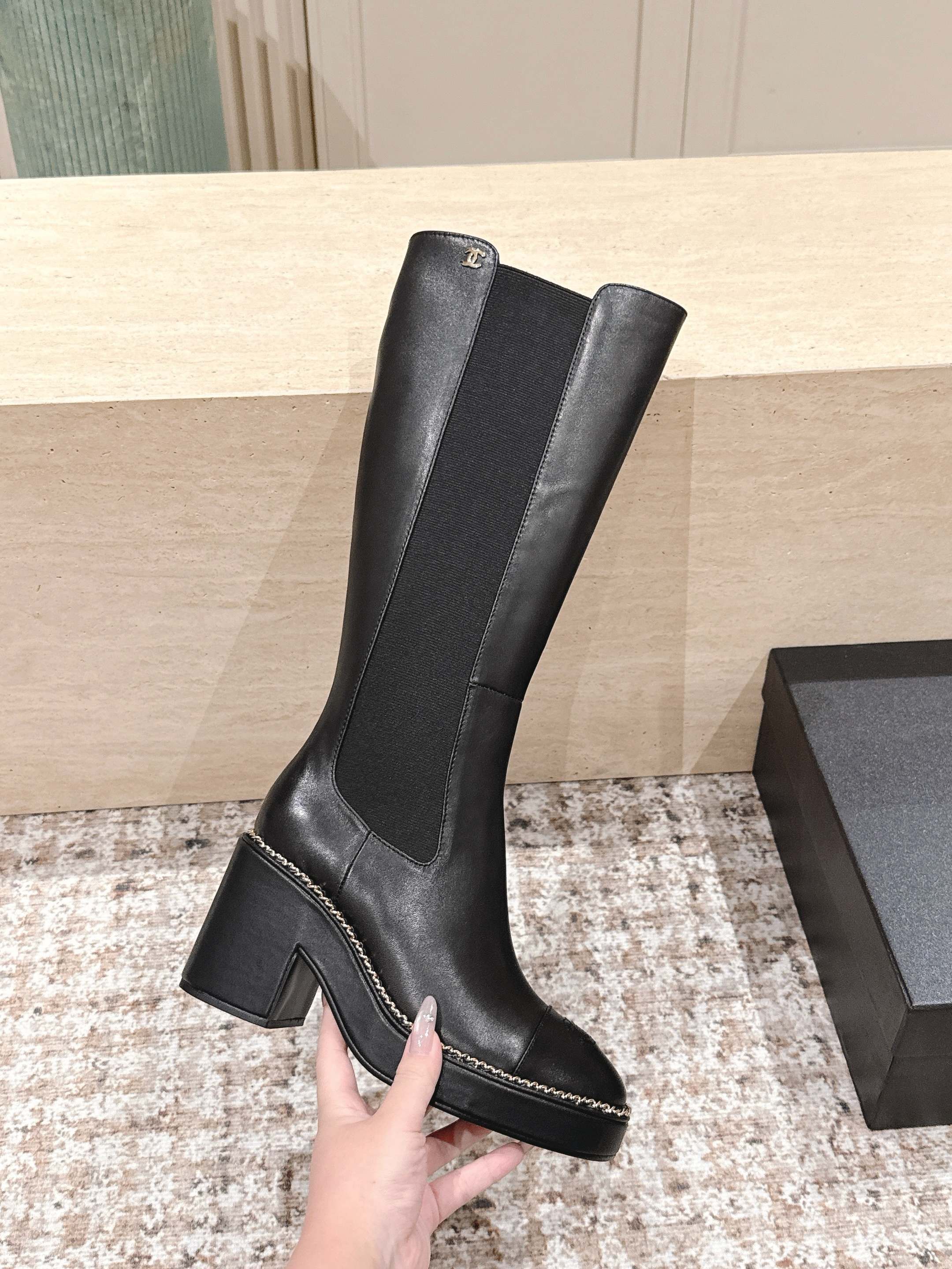 CC 25SS High Boot Black Calfskin 431721