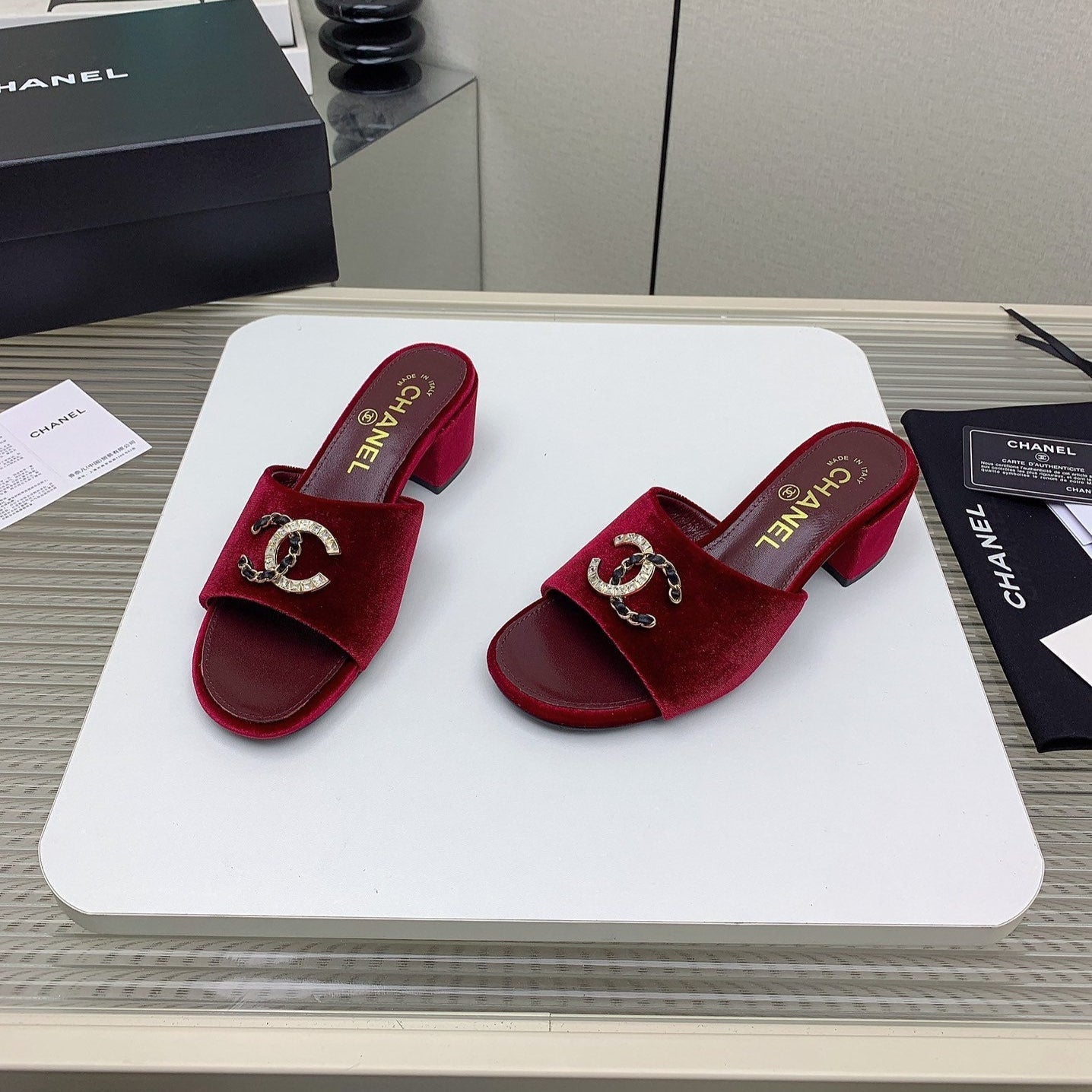 CC Mule Sandals 50m In Dark Red Velvet 148971