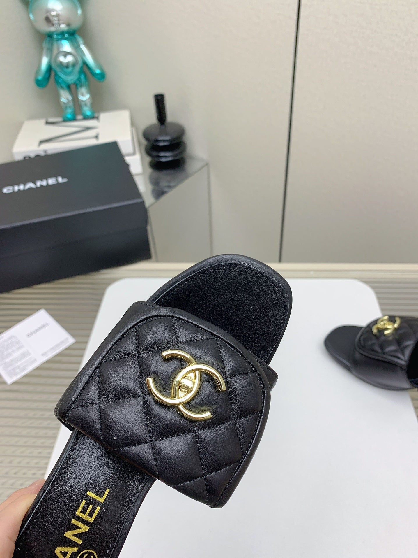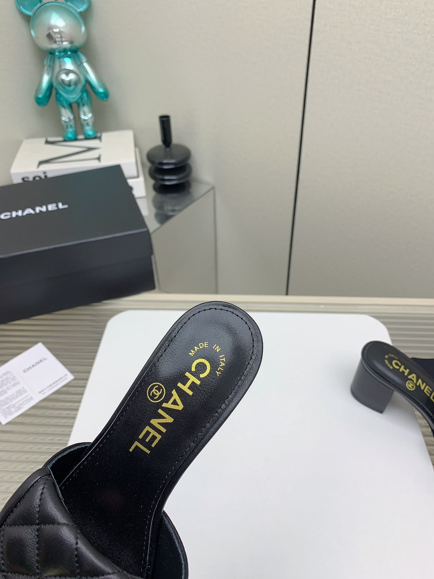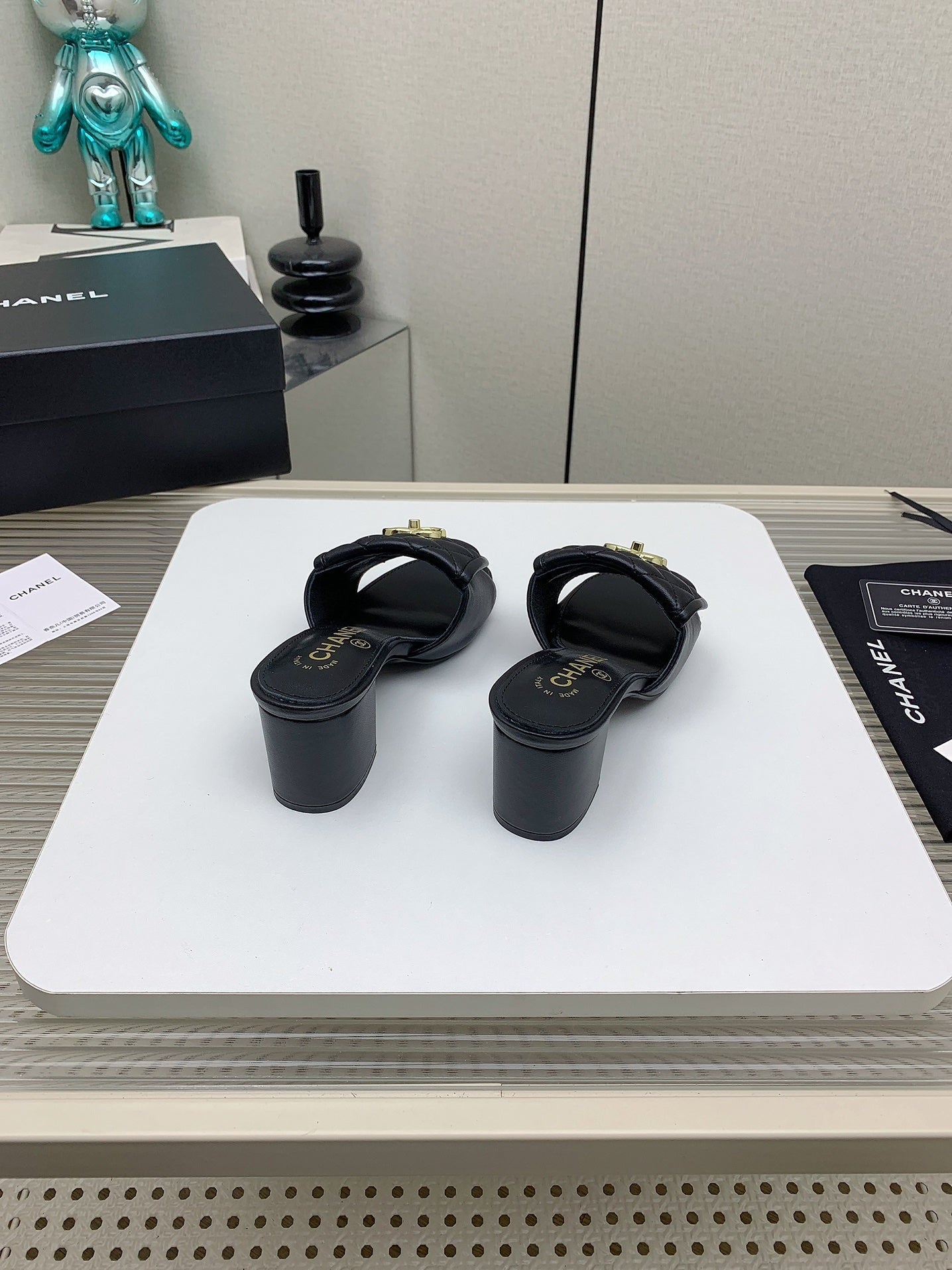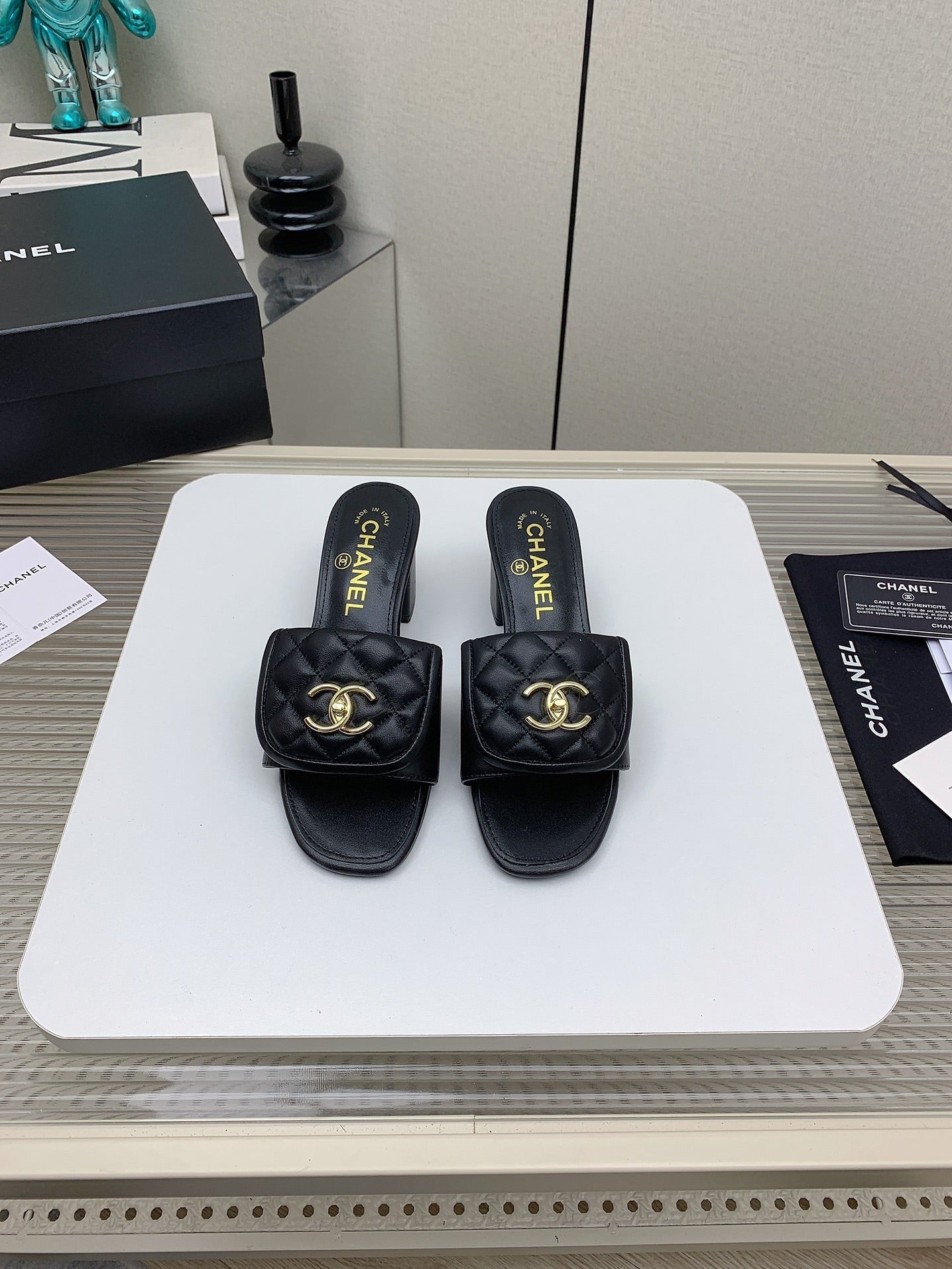 CC Mule Sandals 50mm In Black Quilted Lambskin 148942