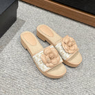 cc sandal flower white canvas beige calfskin