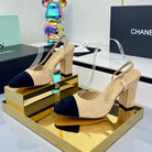 Chanel Slingback 90mm Light Beige Black Suede 469669