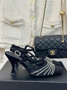 Crystal Flat High Heel Sandals Black