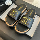 Double C Wood Grain Platform Slippers Black Sheepskin
