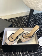 mule sandal beige tweed black lambskin