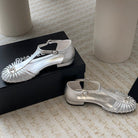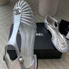 roman sandals wedge silver metalic lambskin