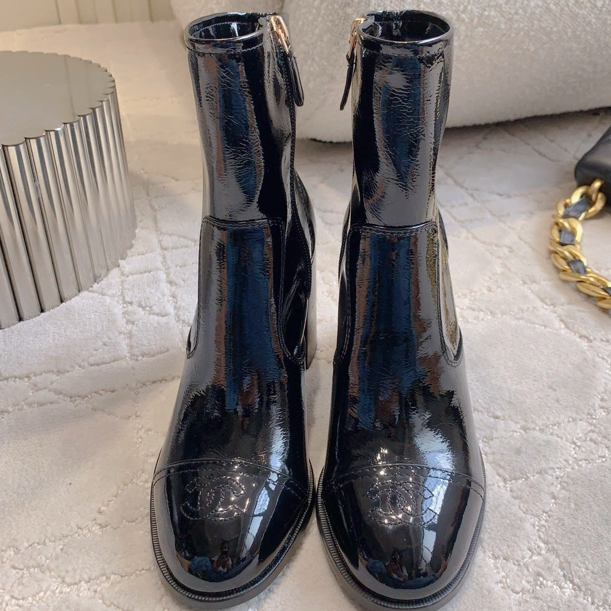 CC 25 Heeled Short Boot Light Gold mix Black Patent Leather 516677