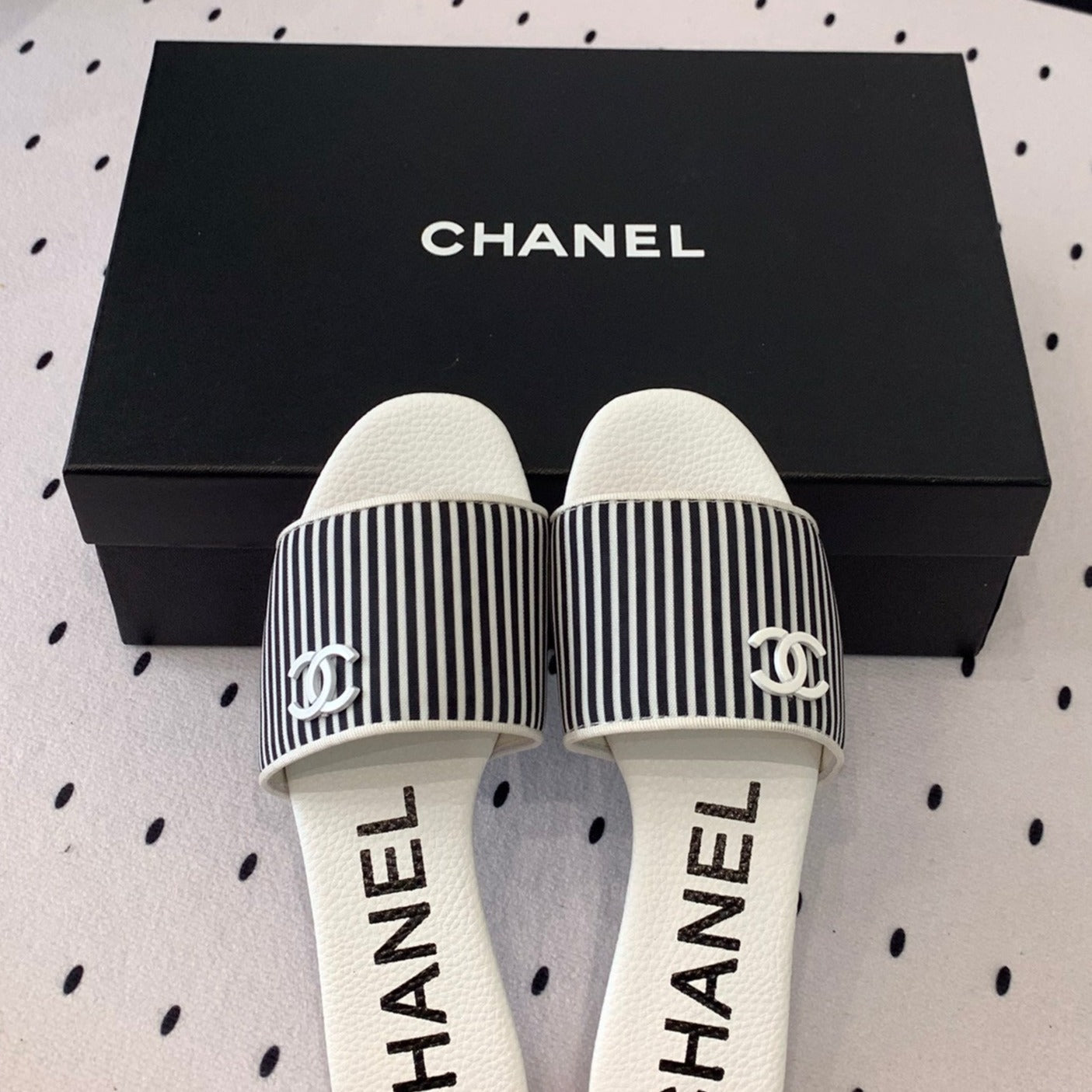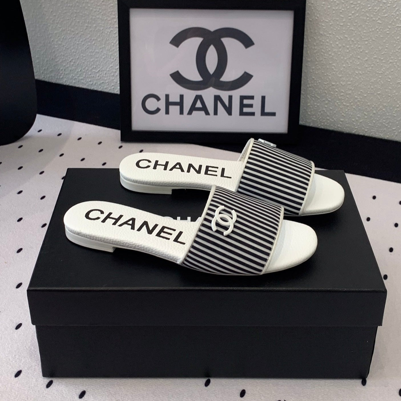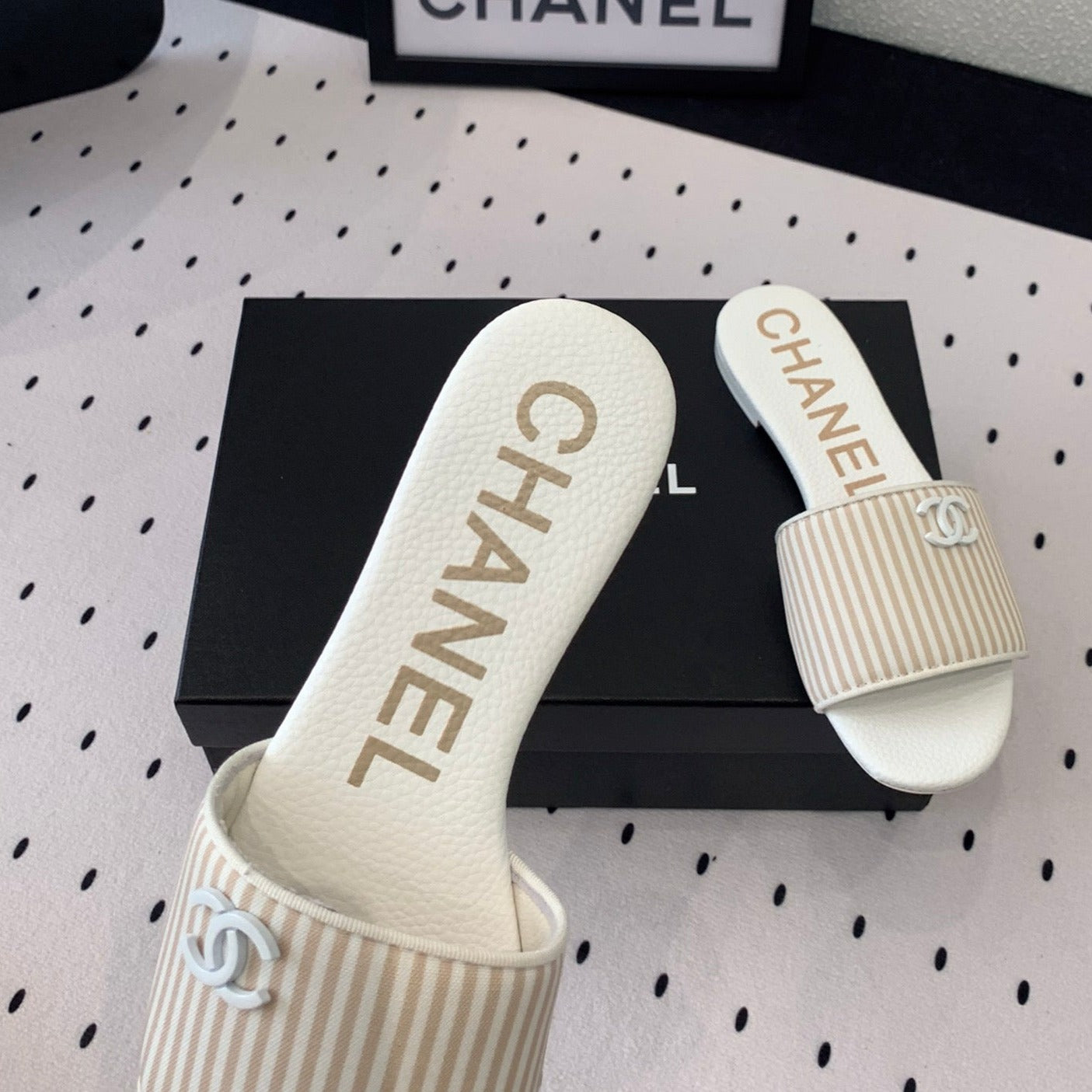 cc mule sandal tripe strap 40 beige canvas calfskin