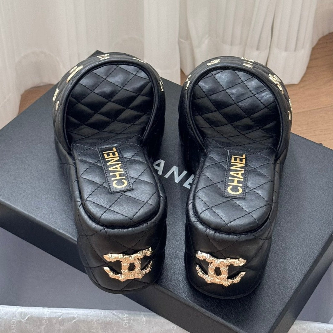 Platform Peep-Toe Sandals Black/White Caro Lambskin