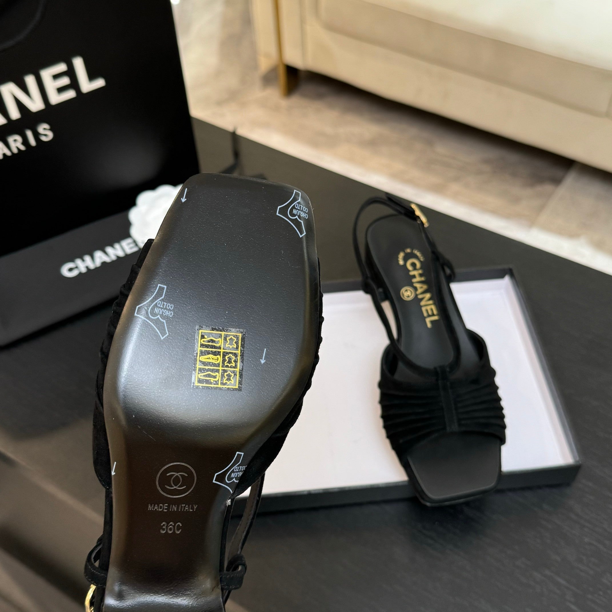 CC 25S Sandal Heel 50mm Black Suede Kidskin