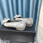 CC BALLET FLAT IN SPANISH GRAY SUEDE AND BLACK CALFSKIN WITH FLOWER