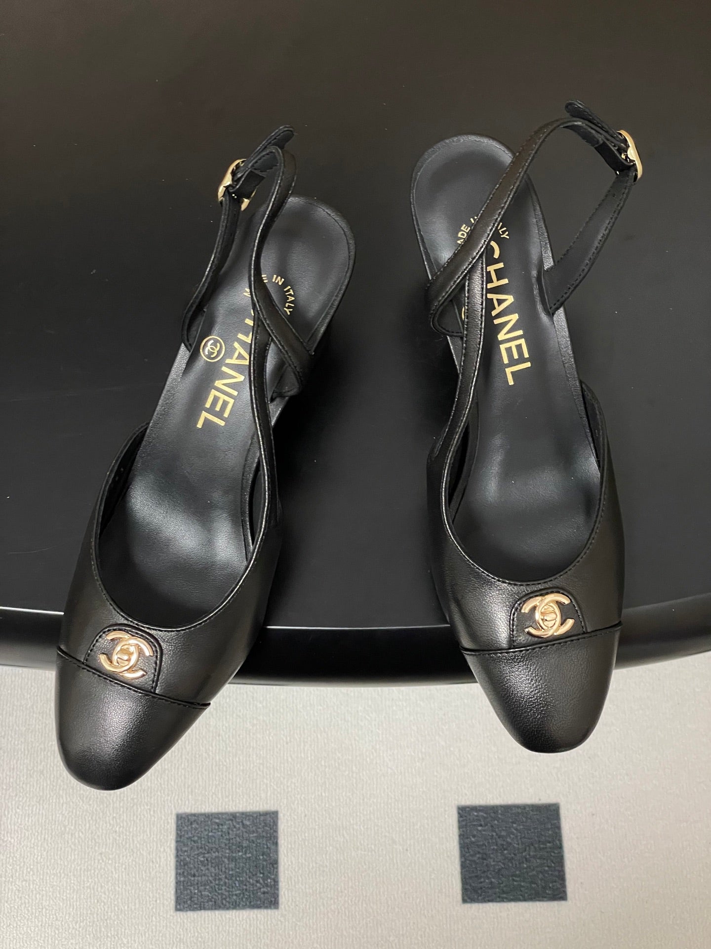 Chanel 25 Slingback 50mm Black Lambskin 473218